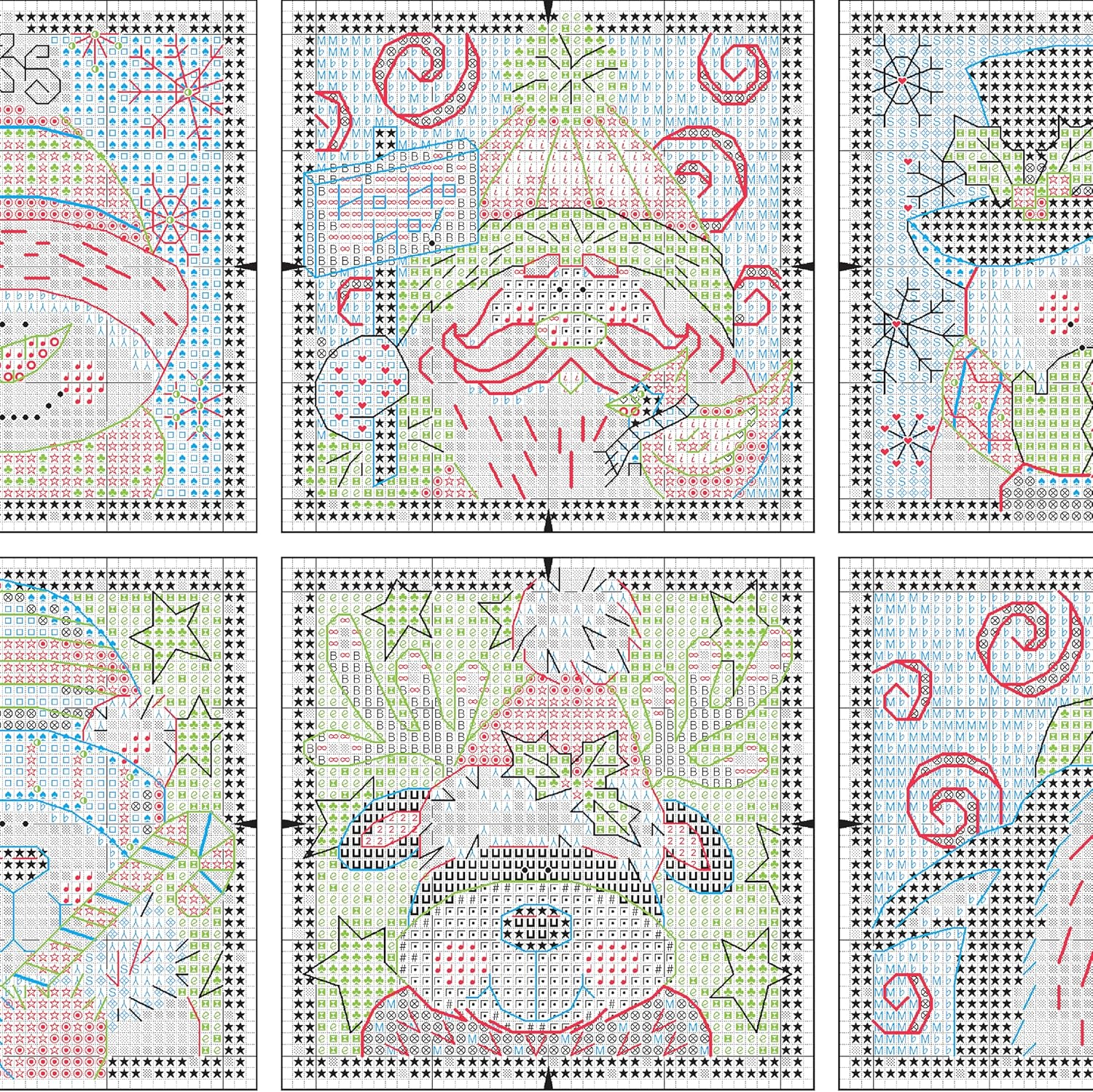 - 6 Weihnachtskumpel - gezählter Kreuzstich auf 18 Loch Baumwolle Elfenbein Aida