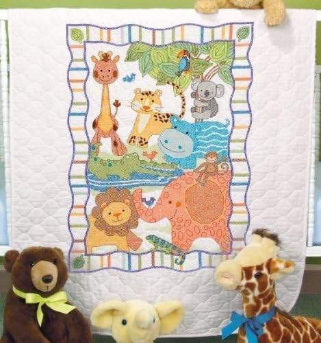- Tiere in allen Formen und Grössen sind auf diesem Kreuz Stich Quilt versammelt.