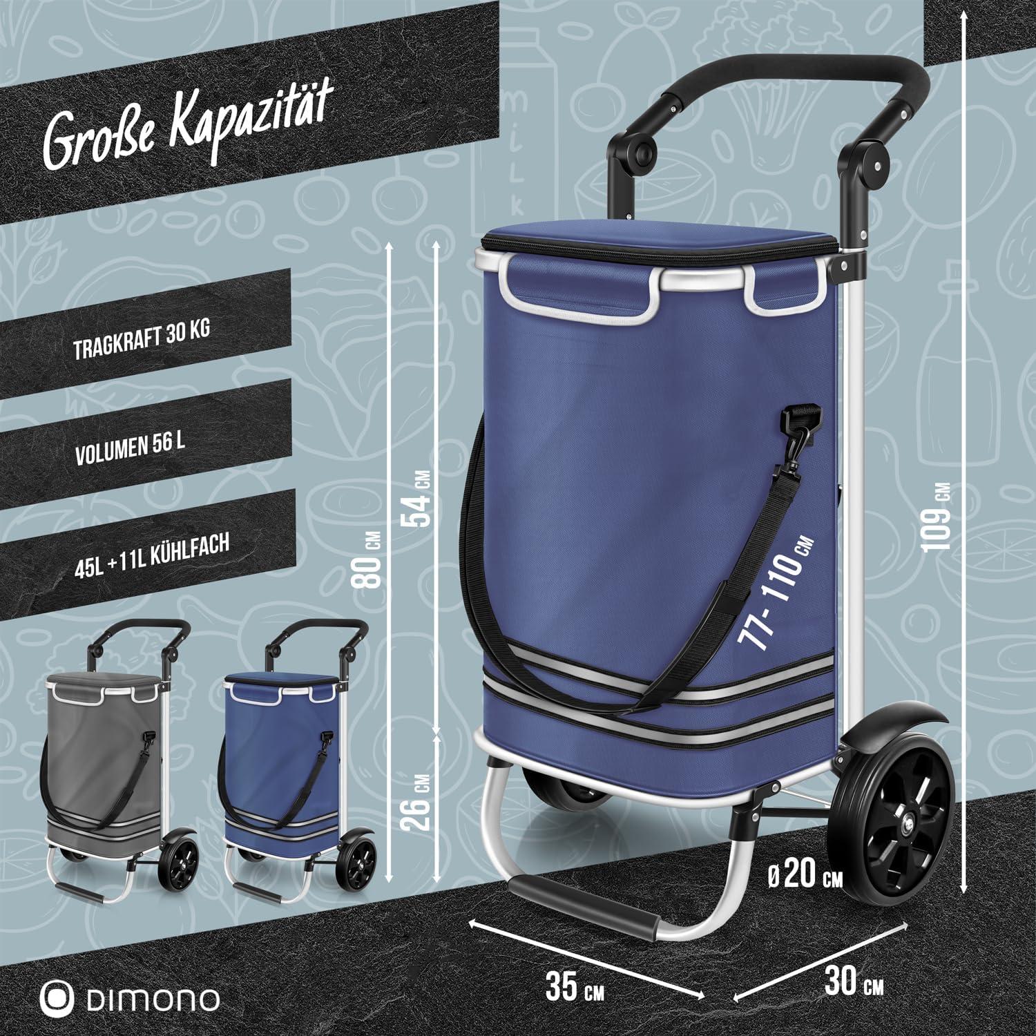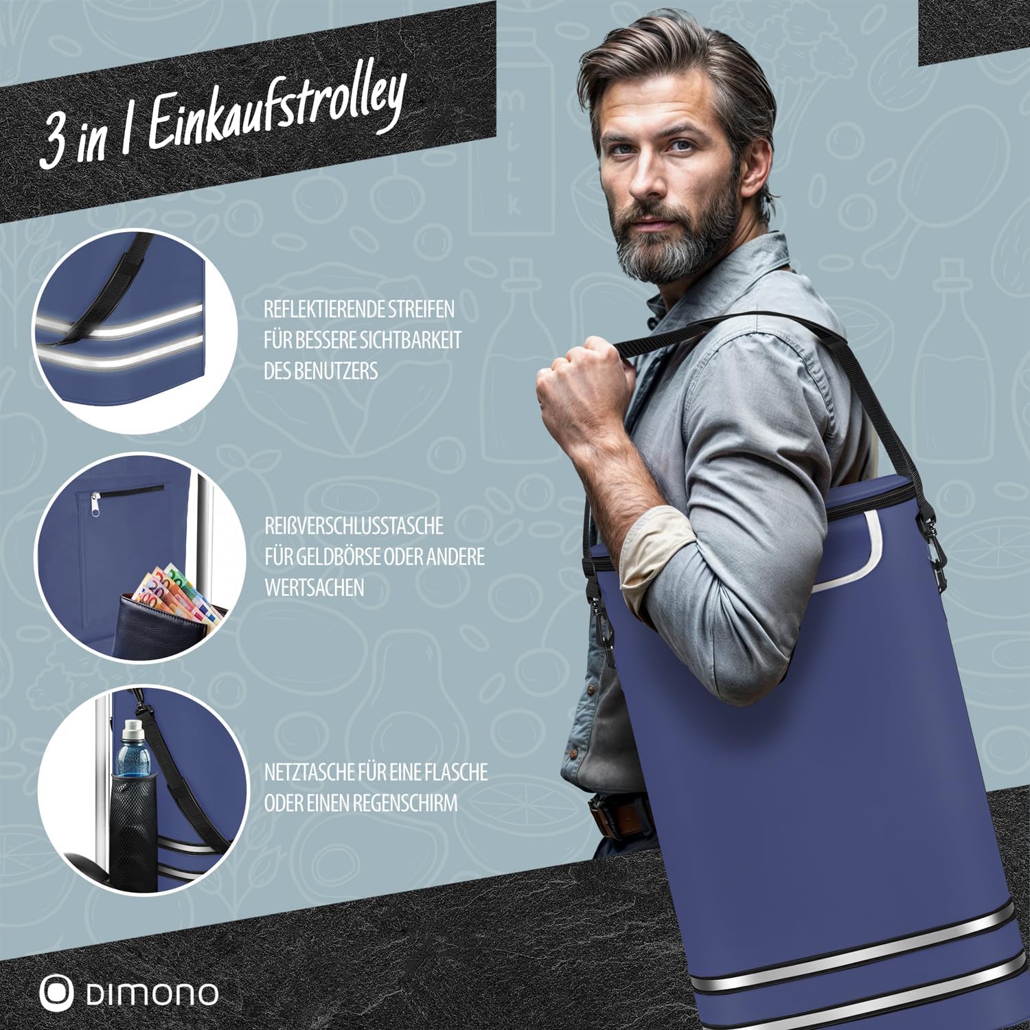 - ๐ฆ ๐๐ฅ๐ขss๐ญร๐๐๐๐๐ฅ ๐ฆ๐ง๐๐จ๐ฅ๐๐จ๐ - Mit einem Volumen von 56 Litern bietet der Dimono Trolley jede Menge Platz fรผr grosse und kleine Einkรคufe. Lebensmittel, Haushaltswaren oder Getrรคnkeflaschen โ alles