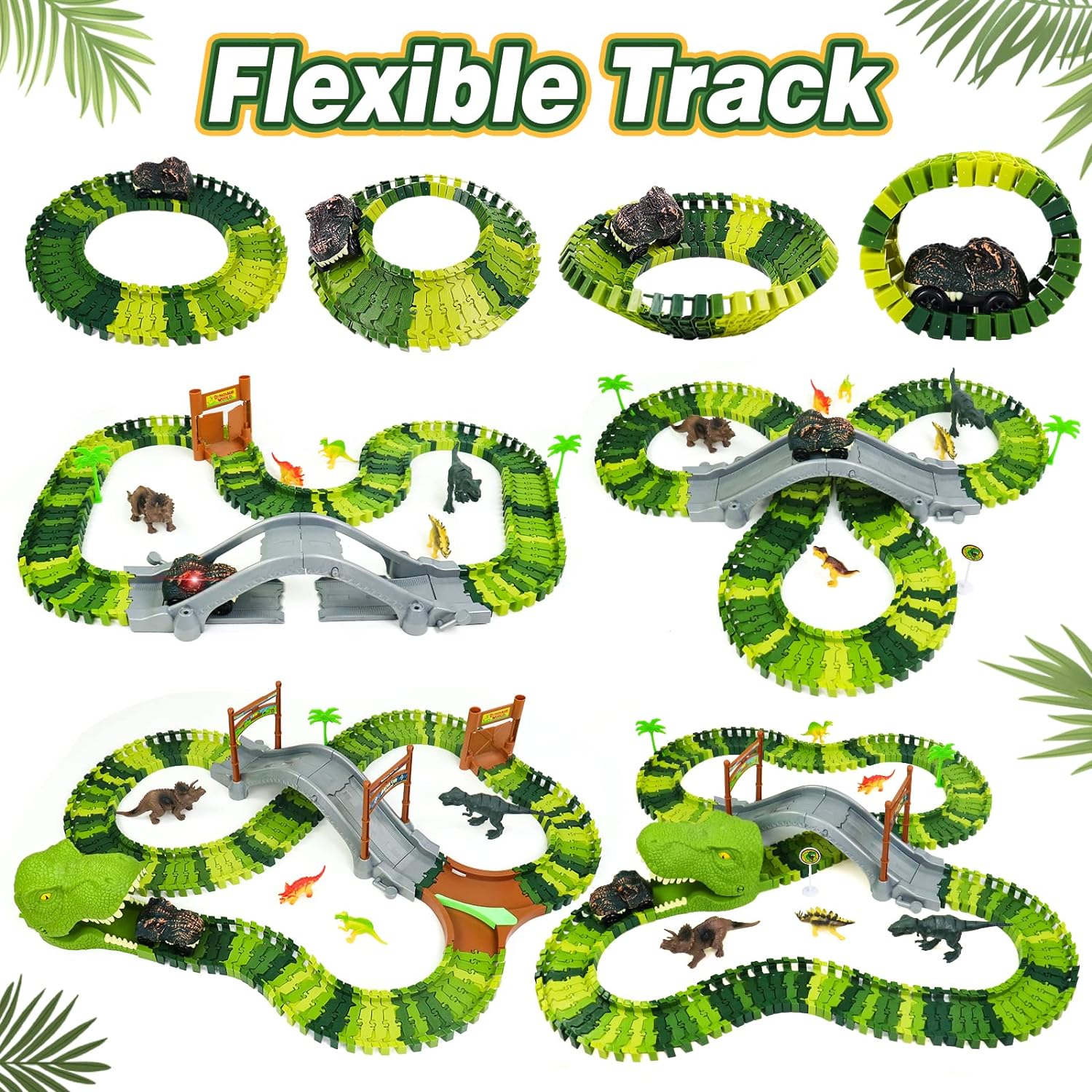 - 🌟🌟【Autorennbahnen - Einfach Zu Bauen】Rennbahnen können gebogen werden, um den anforderungen unterschiedlicher szenenerstellung gerecht zu werden. Mit zubehör wie 14 sauriern und verschiedenen verkehrsschildern zur förderung des saurier- und