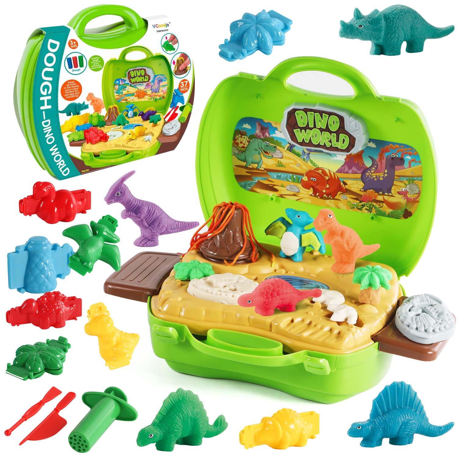 - ✅ Magische Box: Dieses Dinosaurier-Spielzeug hat eine Vielzahl von Zubehör. 1 Aufbewahrungsbox, 1 Ausgrabungsboden, 2 Aufkleber, 2 Vulkanformen, 3 Pflanzenformen, 2 Fossilformen, 2 Seitenständer, 11 Dinosaurierformen, 3 Spielteigwerkzeuge, 11 Knete.
