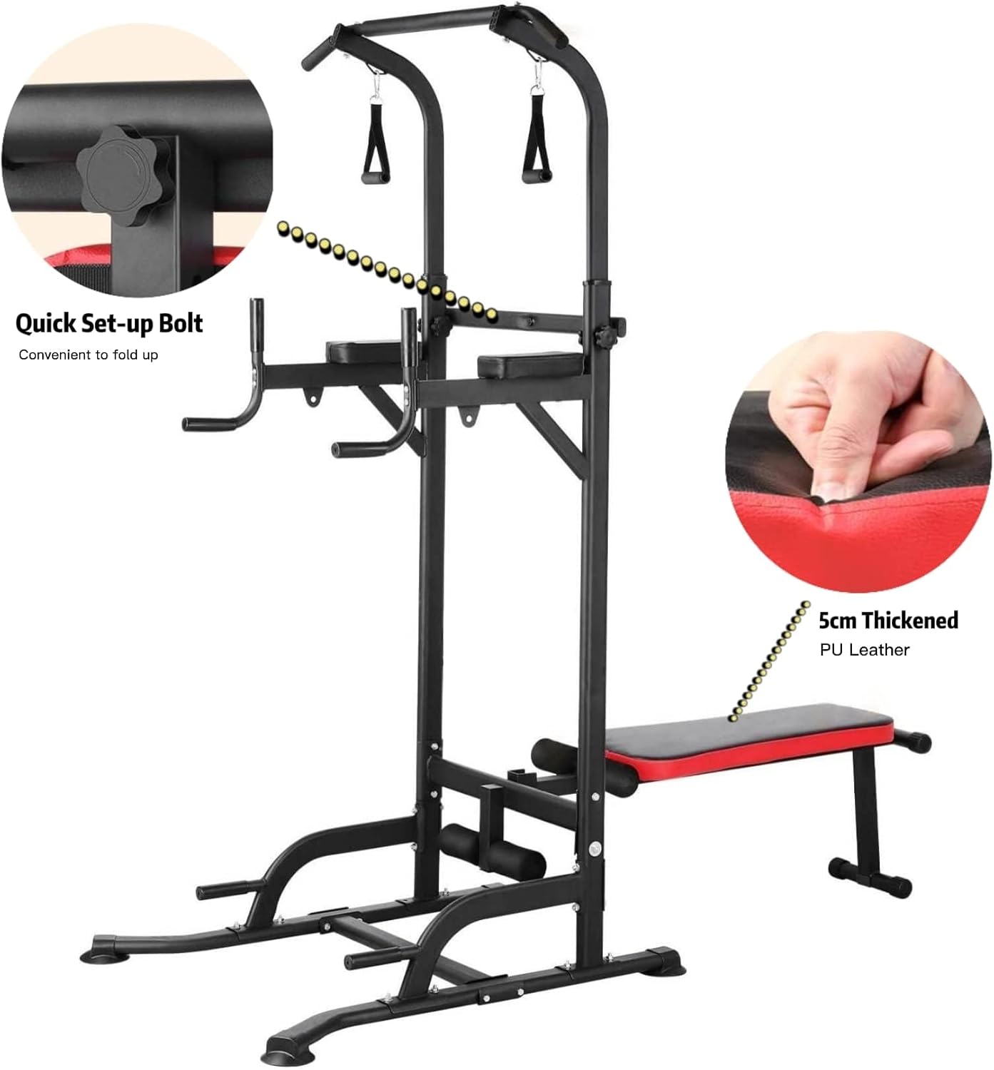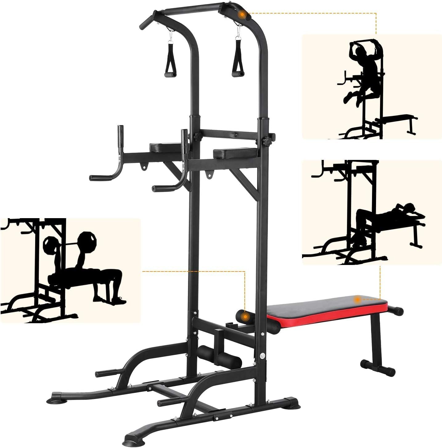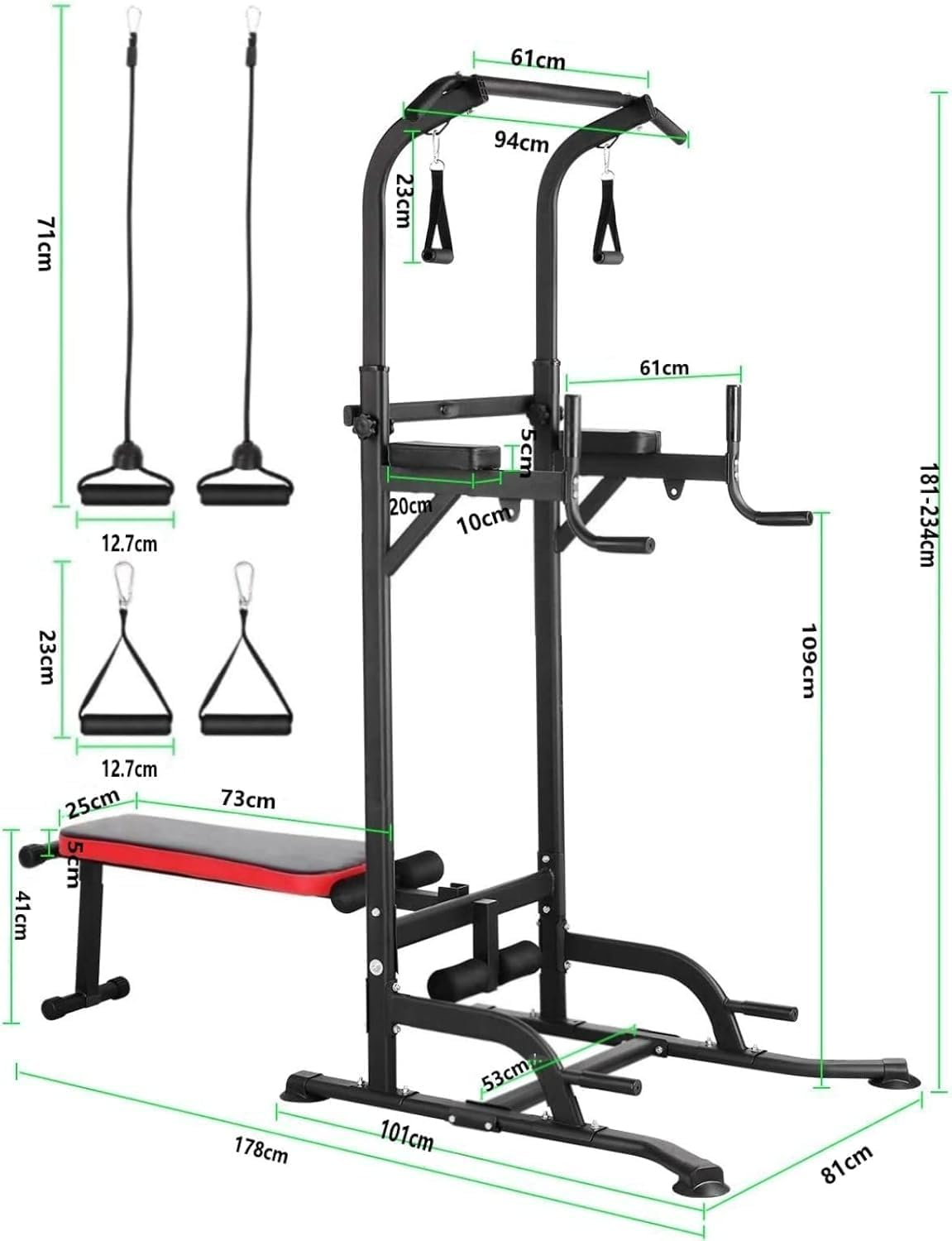 - 【6 HÖHENVERSTELLUNGSSTUFEN】 Der höhenverstellbare Bereich beträgt 181 - 234 cm, so können Sie die Höhe ganz einfach an Ihre Bedürfnisse während des Trainings anpassen. Die unterste Stufe ist für Kinder gedacht und der Power Tower eignet sich