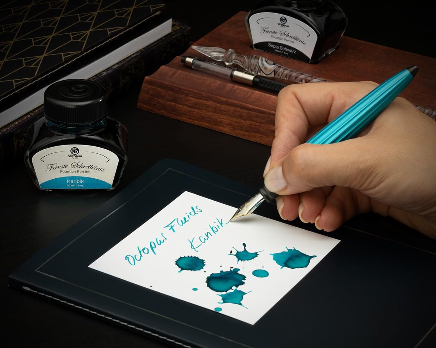 - EIN EXKLUSIVES SCHREIBSET für Freunde der edlen Korrespondenz: der innovative Füllhalter Aero von Diplomat in türkis mit passender Füllhaltertinte "Karibik" von Octopus Fluids (30 ml). Das perfekte Geschenk für Frauen und Männer, die das Besondere