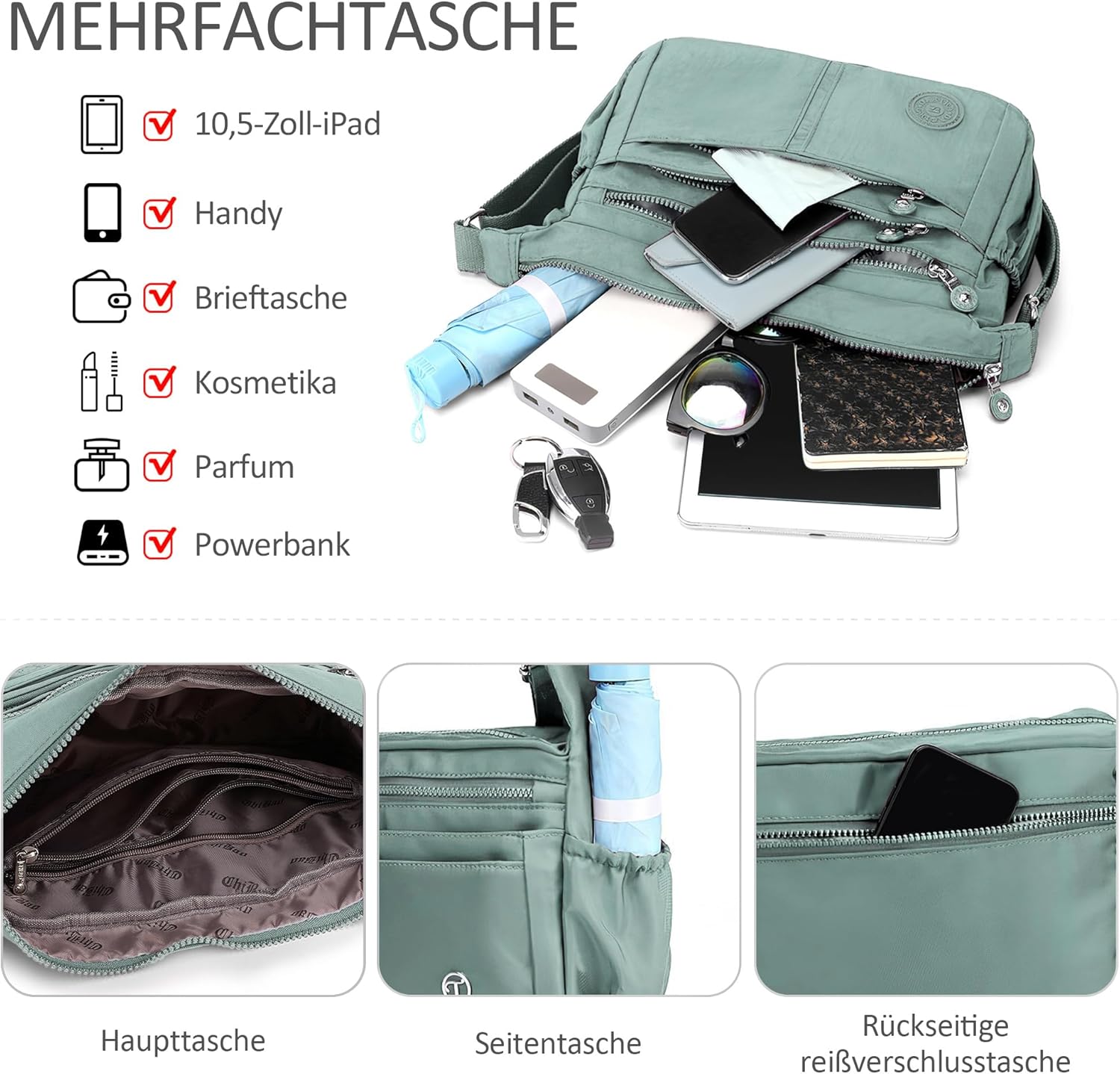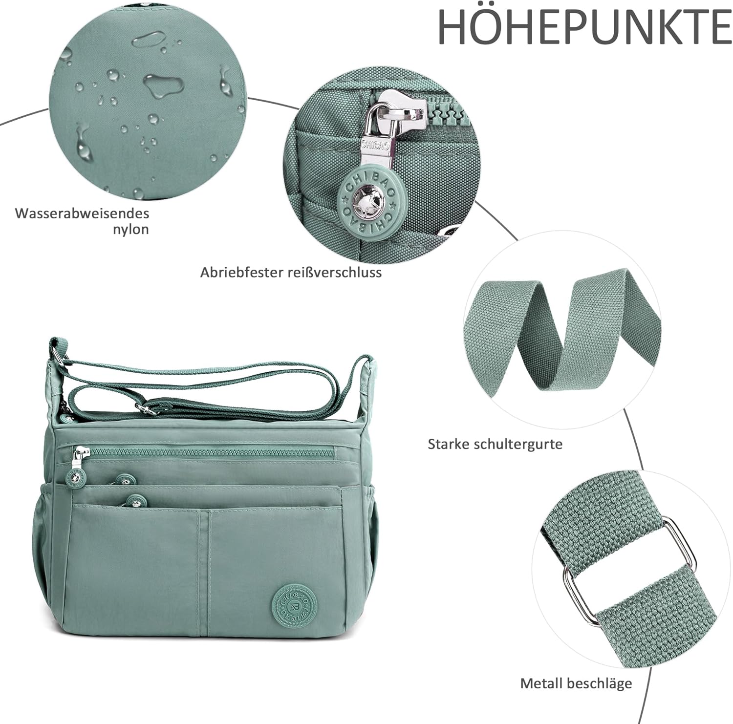 - Nylon Umhängetasche: Leichte, bequeme und modische umhängetasche. Das multi pocket design kann Ihre täglichen bedürfnisse erfüllen. Viele fächer, reissverschlüsse sind robust, riemen ist lang genug, um als umhängetasche getragen zu werden, freie
