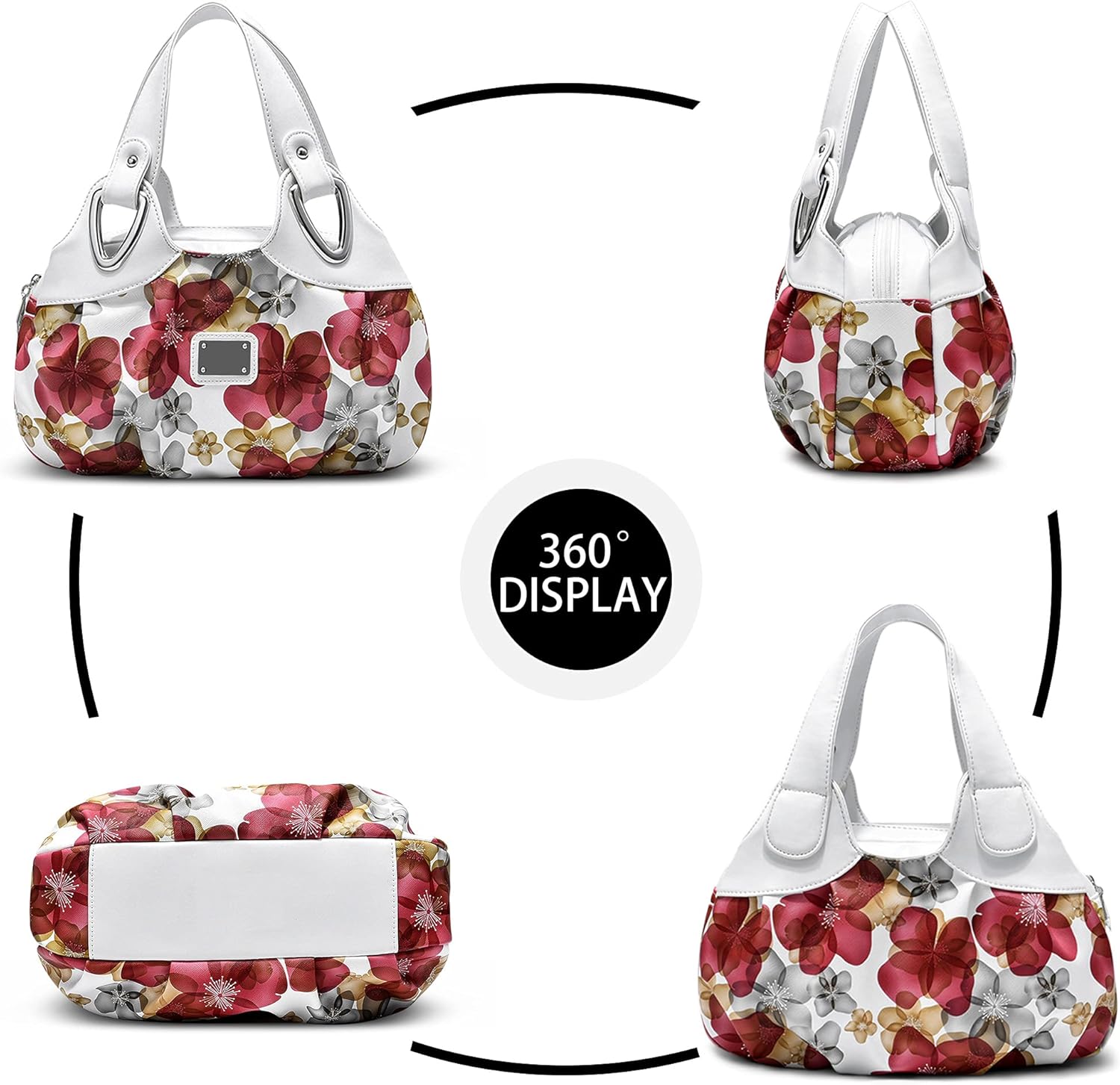 - Damenhandtasche: Eine schöne knödelform tasche, kompakte damenhandtasche mit bedrucktem blumendesign. Mit doppelgriffen, kann der griff nicht zerlegt und eingestellt werden, bequem und tragbar, robust und langlebig. Kleine tasche mit silbernem