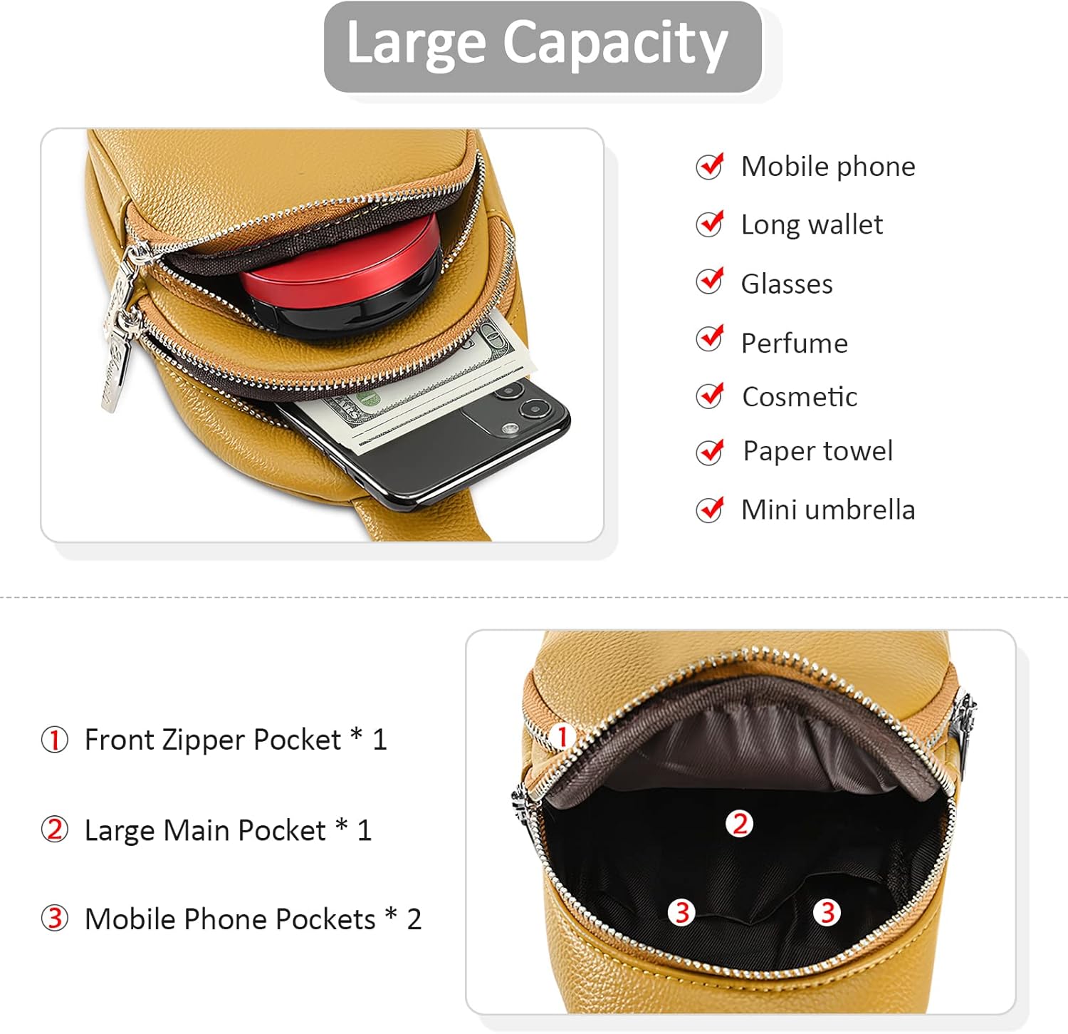 DIRRONA Damen Kleine Umhängetasche Mode Brusttasche lässig Damen Umhängetasche Wasserdicht Echtes Le