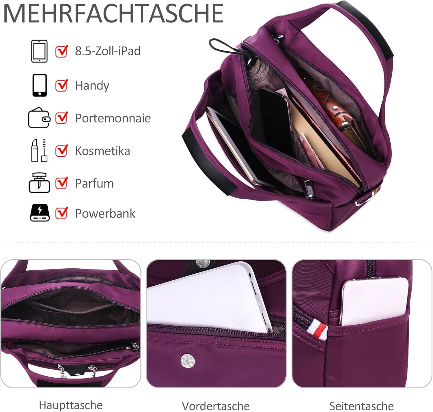 - Multifunktional: Es ist eine vielseitige alltagstasche mit verstellbarem riemen, mit der sie sie als reise umhängetasche, umhängetasche, handtasche und viele andere verwendungsmöglichkeiten verwenden können. Kleines profil, aber viel Innenraum, um