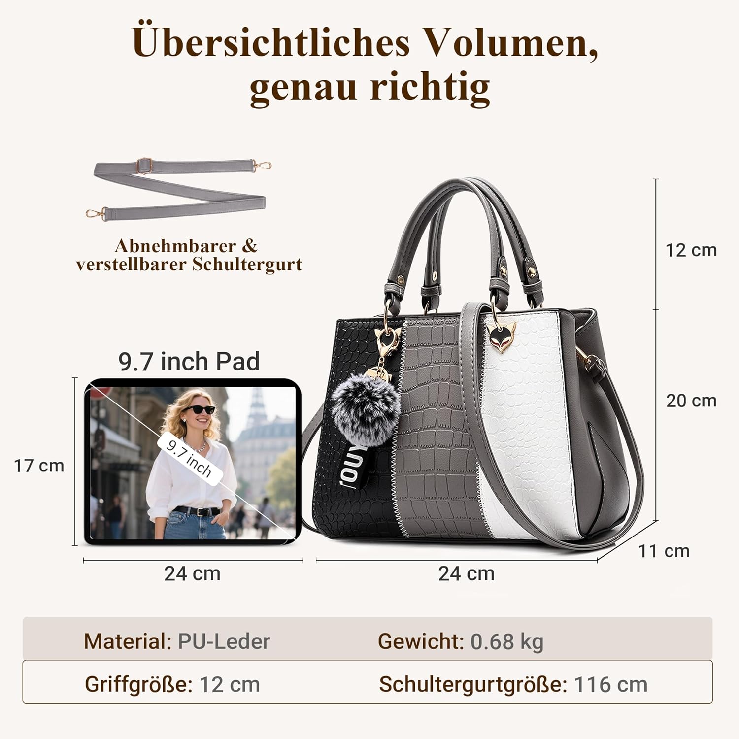 - Modisches Farbblock Design: Diese elegante Damen-Umhängetasche verfügt über niedliche Taschen-Accessoires. Das 3-farbige Blocknähte-Design auf der Vorderseite ist sehr stylisch. Für verschiedene Altersgruppen geeignet. Das passt gut zu Ihrer