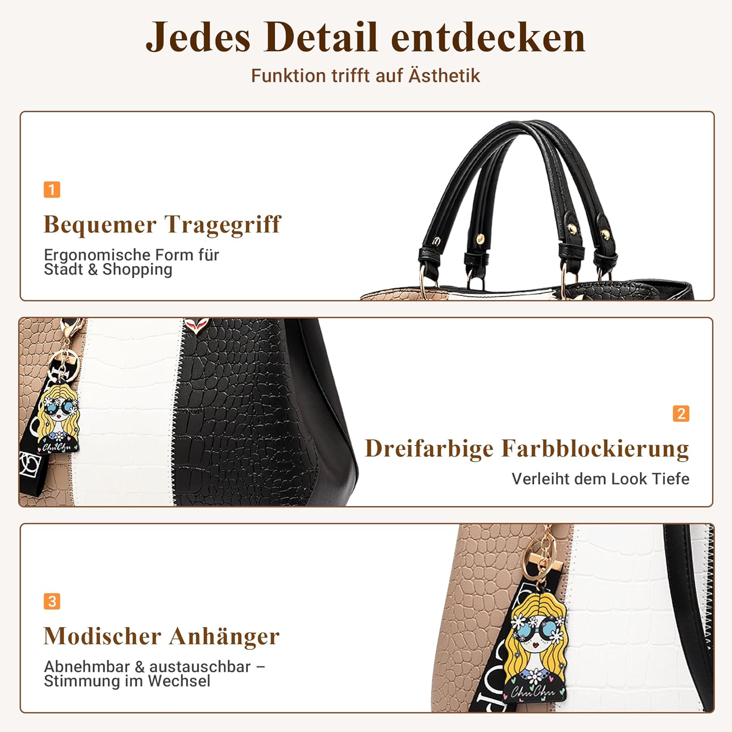 - Eleganz Damenhandtasche: Fein getroffen das Farbdesign Damenhandtasche. Einfachheit und Klassik. PU Ledergriff voller Sinn für Design. Kommt mit stilvollen kleinen Anhängern, Kollokation vier Tier Hardware Zubehör. Macht diese Taschen attraktiver und