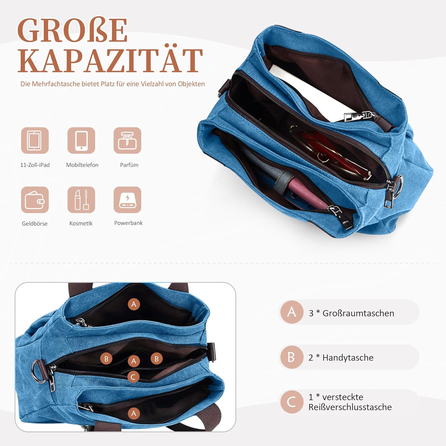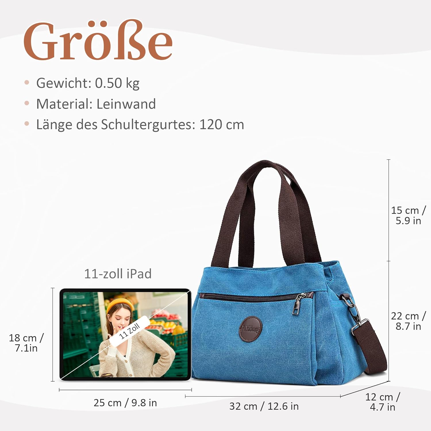 DIRRONA Elegant Damen Segeltuch Umhängetasche Gross Kapazität Handtasche Casual Reise Schultertasche