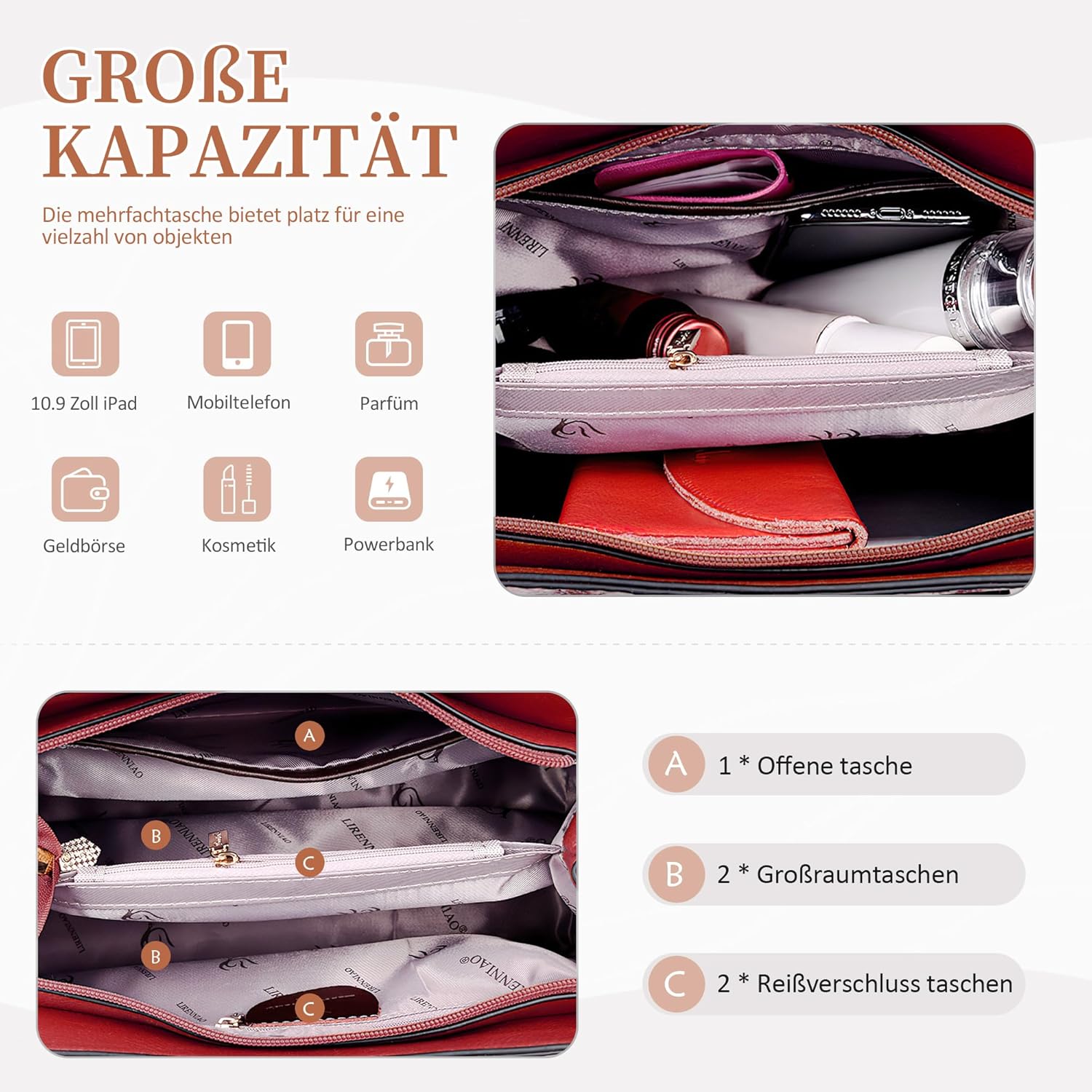 - Modische Damenhandtasche: Nützlich für tägliche reisen, versammlungen, abende, dating, hundespaziergänge, reisen, partys, karneval, besuche in bars, restaurants, arbeiten, einkaufen, geschäft und alle gelegenheiten. Es wird den täglichen bedarf in