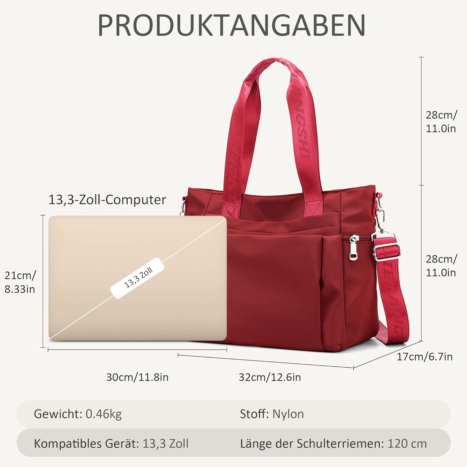 - Perfekte Grösse: 32 x 17 x 28 cm. Gewicht: 0.46 kg. Grifflänge: 28 cm. Diese Tasche hat insgesamt 9 Taschen: Aussen: 2 Seitentaschen, 2 Fronttaschen, 1 Reissverschlusstasche hinten; Innen: 1 Hauptfach, 2 aufgesetzte Innentaschen, 1