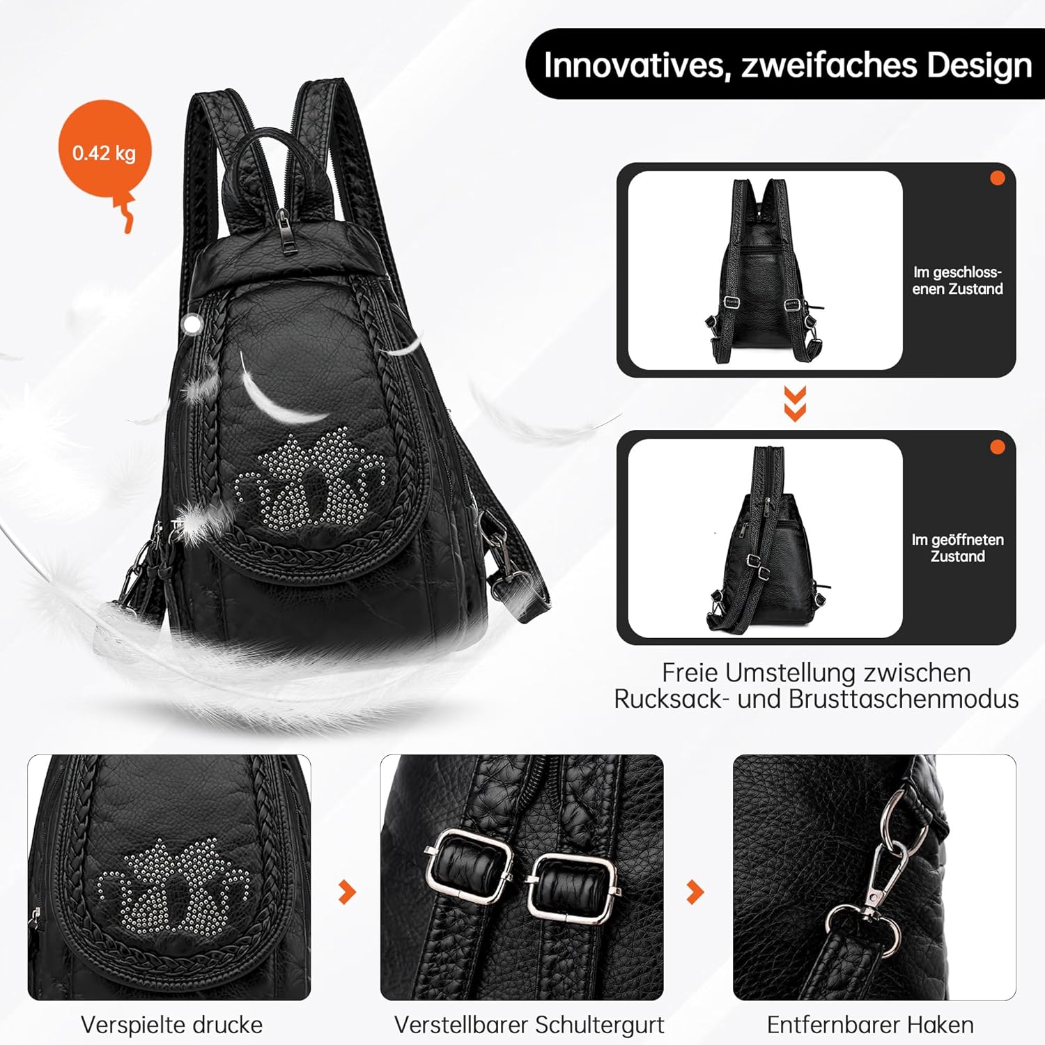 DIRRONA Rucksack Damen Beiläufig Kleine Brusttasche für Damen Multifunktionale Reise Wasserdicht Sch