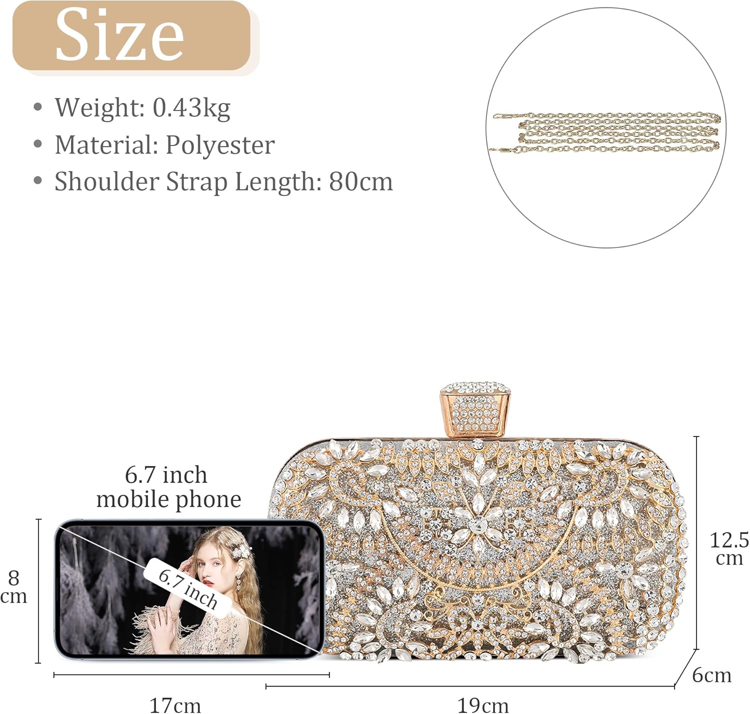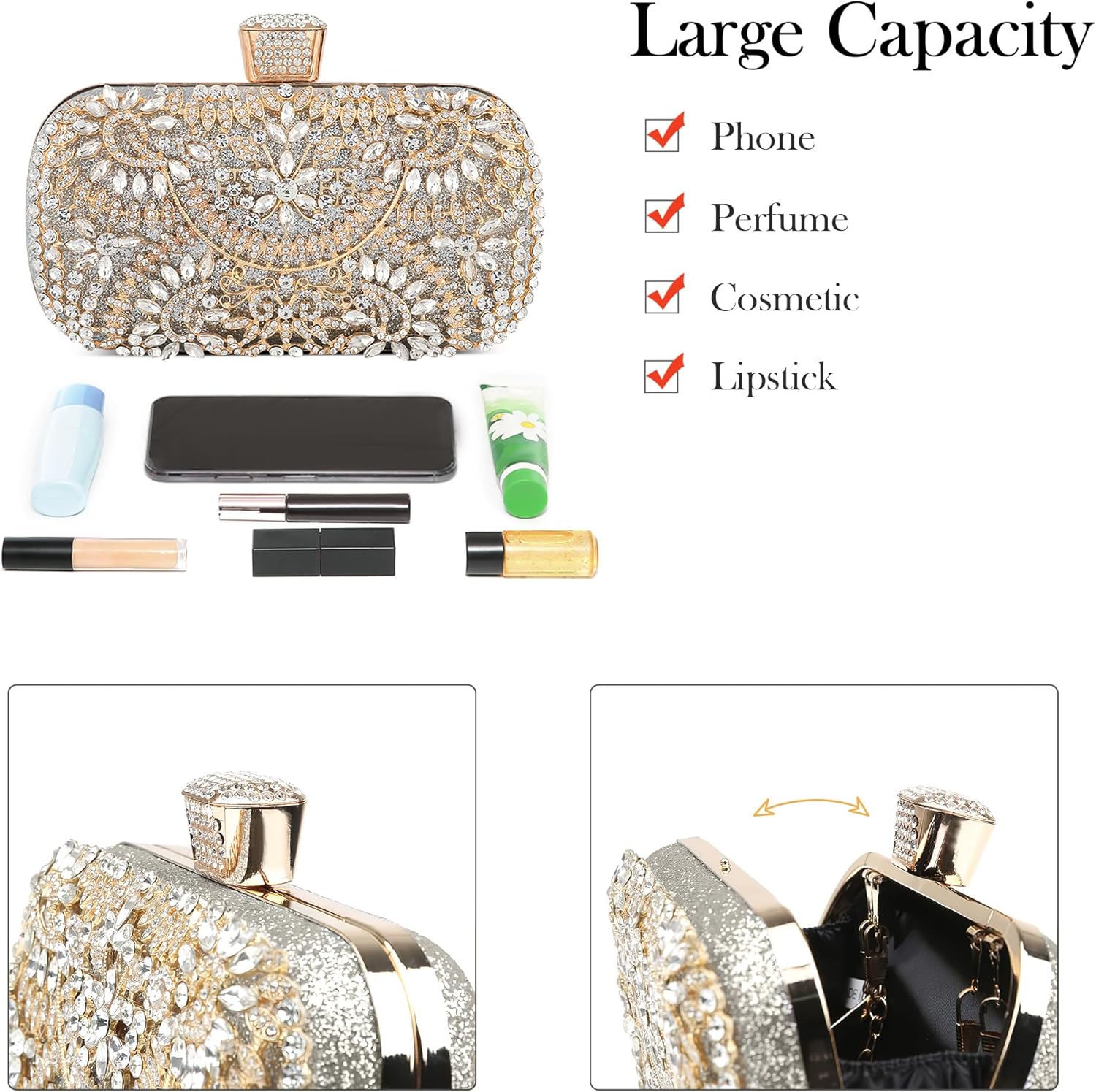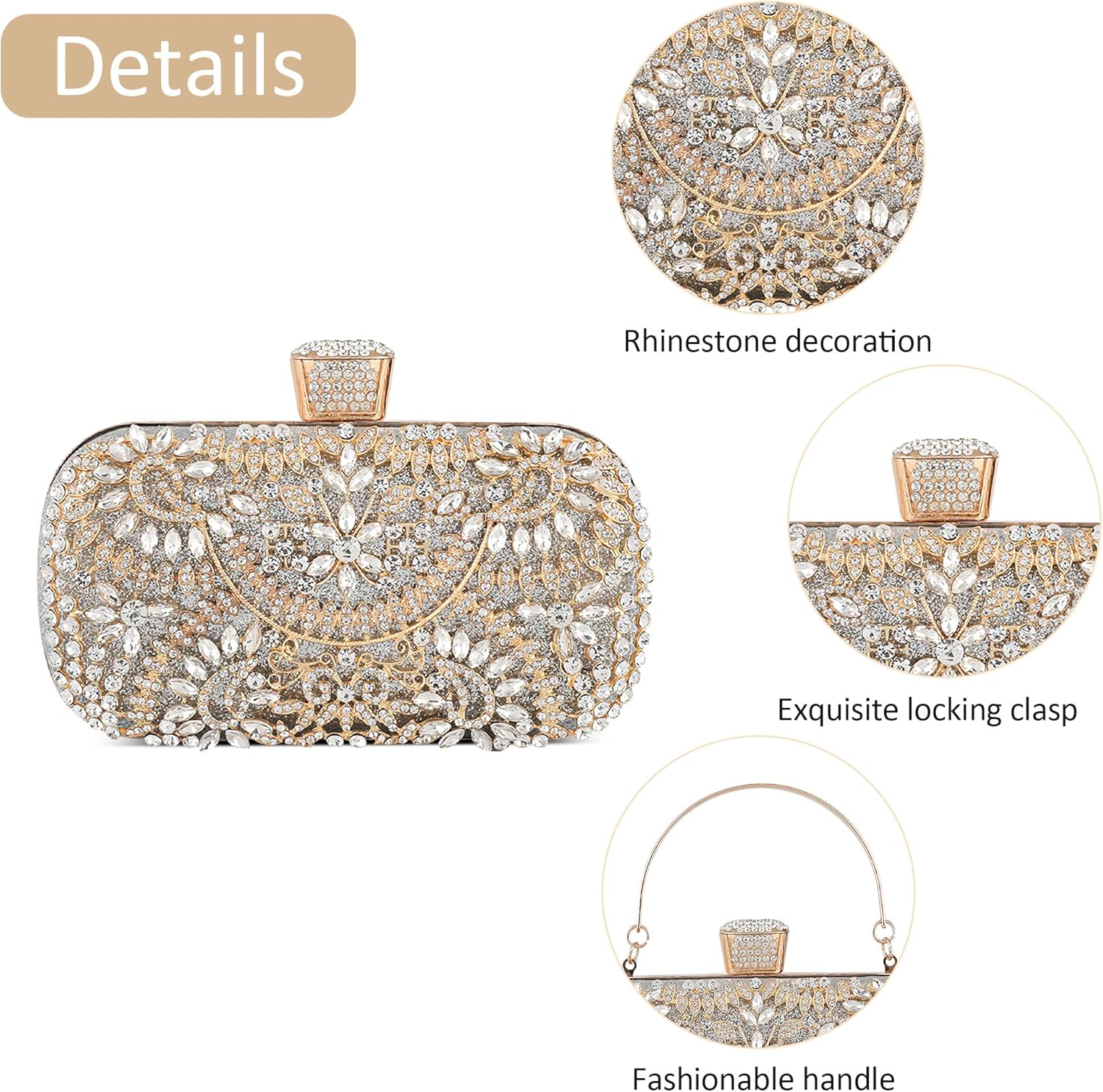 • Damen-Clutch mit Strasssteinen: Dies ist eine elegante und stilvolle Abendtasche. Die schicken Muster, die von der reinen Hand des Designers geschaffen wurden, sind fortschrittlich und elegant. Mit einem wunderschönen Diamantverschluss sieht es aus wie