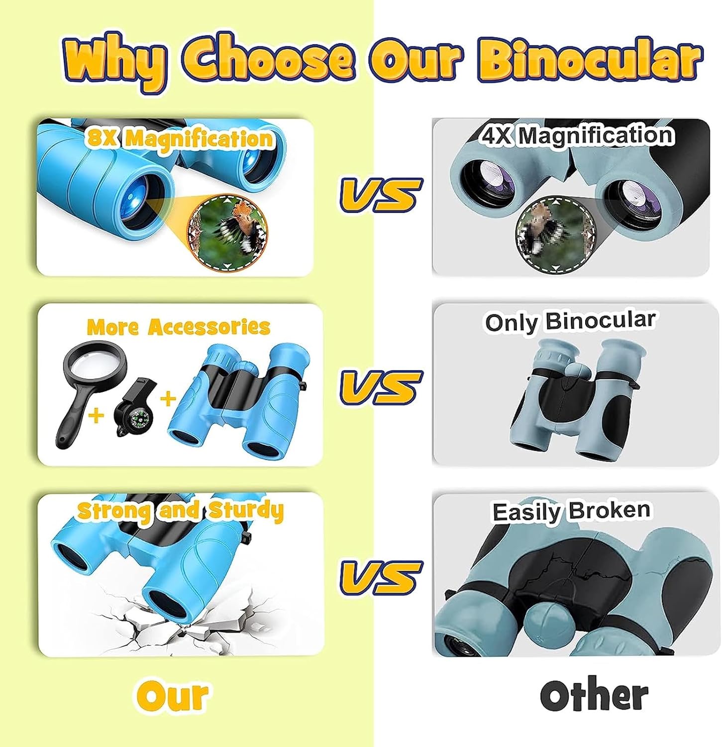 • 🌳【OUTDOOR ESSENTIALS FÜR KINDER】Unsere unser professionelles Fernglas haben eine Super-Vergrösserung von 8-fach, damit sie kristallklar sehen. Die mehrschichtige Breitbandbeschichtungstechnologie des Teleskops macht die Szene, die Sie sehen,