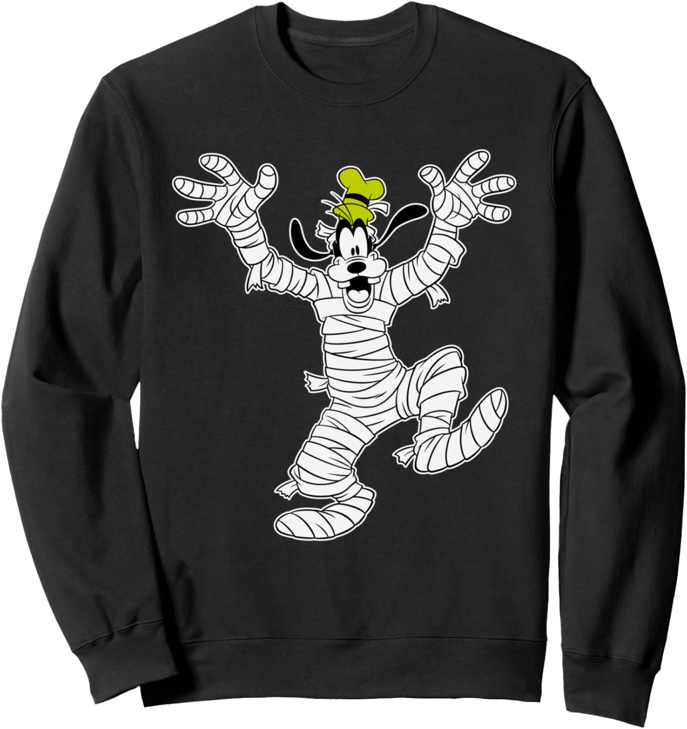 PRODUKTBESCHREIBUNGEN Mickey's goofiest pal looks frightfully cute in his mummy costume on this cute Disney Halloween t-shirt. With both arms up in a funny attempt to scare, Goofy seems ready for some serious Halloween fun, and you'll be too when you wear this seasonal Goofy tee shirt. Available in a t-shirt, premium t-shirt, tank top, long sleeve tee, and sweatshirt.