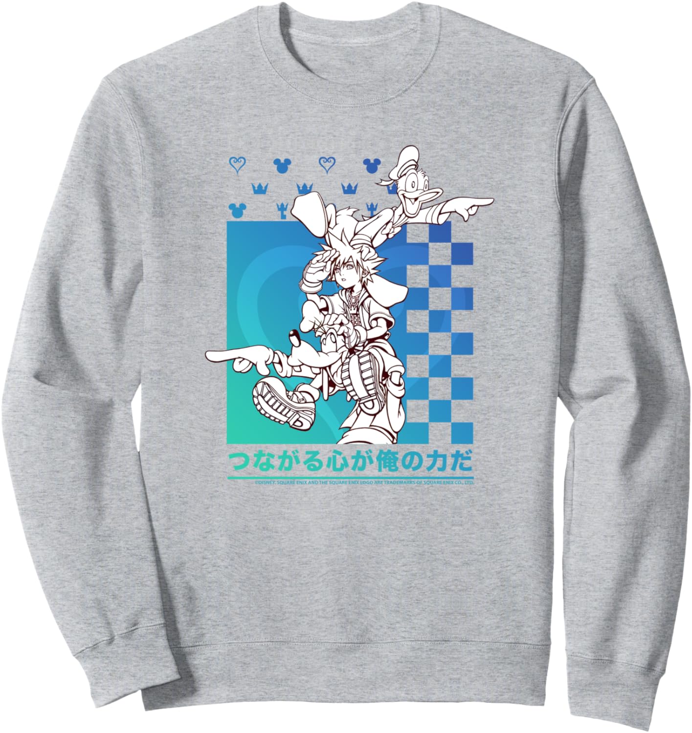Disney Kingdom Hearts Sora Donald Goofy Kanji Checkerboard Sweatshirt