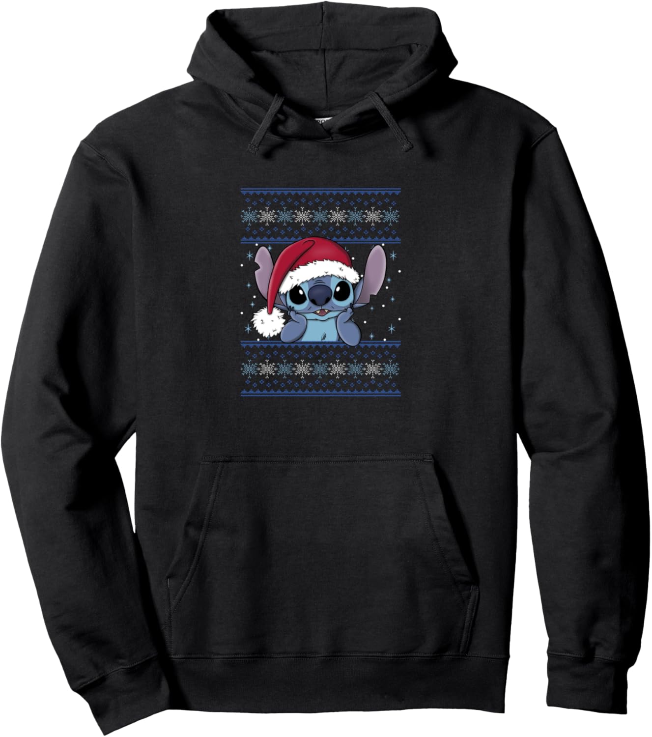 Disney Lilo & Stitch In Santa Hat Ugly Sweater Snow Oooooh Pullover Hoodie