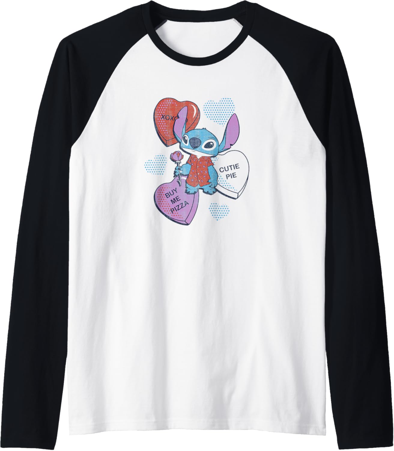 Disney Lilo & Stitch Valentinstag Candy Hearts & Flowers Raglan