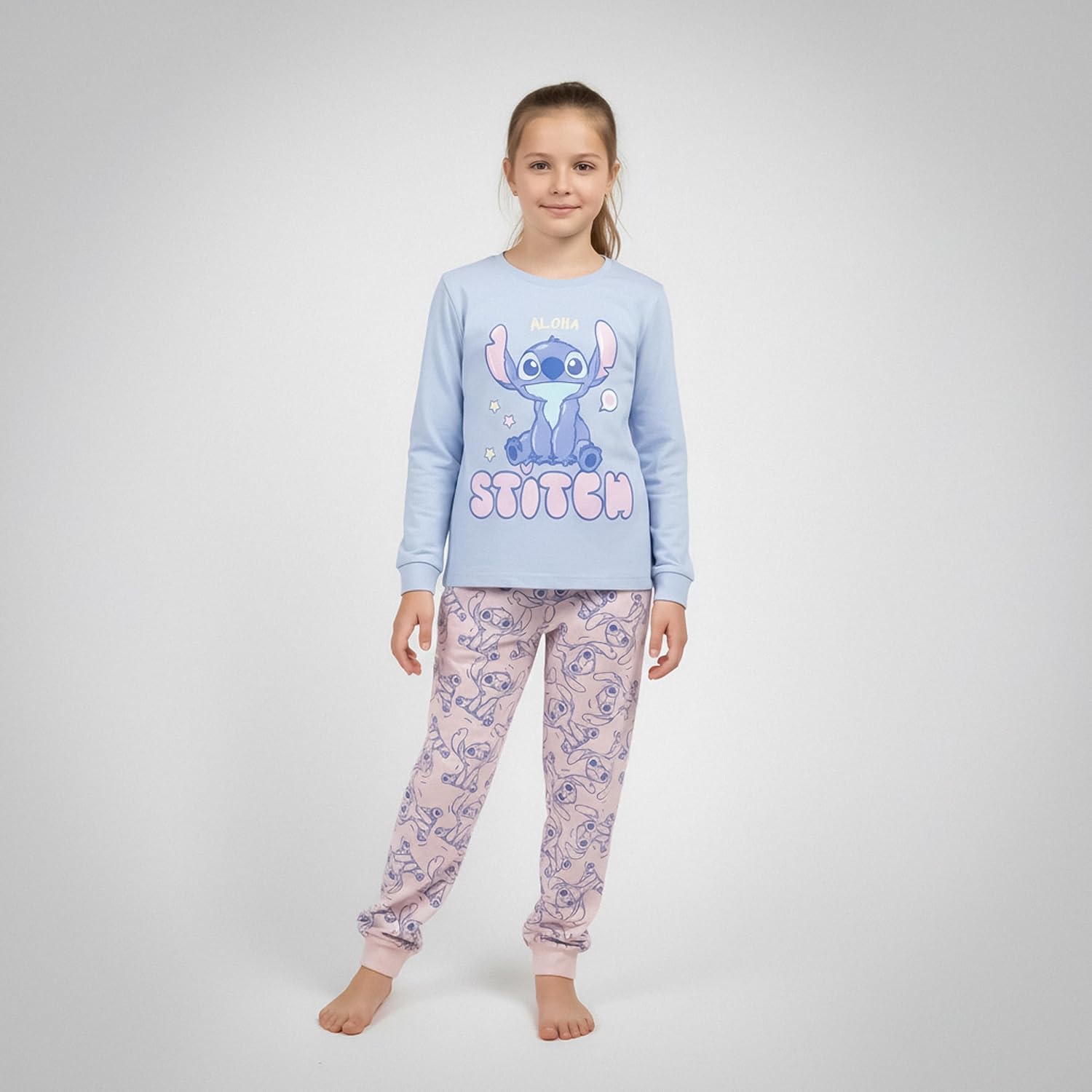 - Original Disney Stitch Design: Zweiteiliger Mädchen-Schlafanzug mit grossem Stitch-Motiv und niedlichen Herz- und Blitzdetails – ideal für kleine Fans des frechen Aliens!