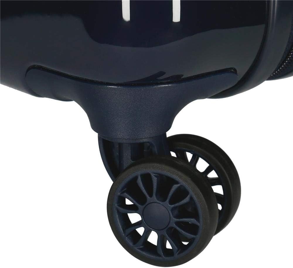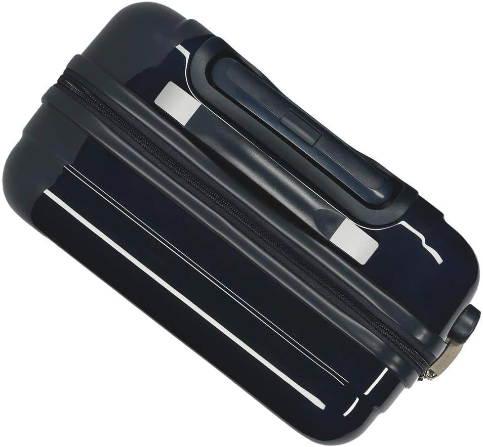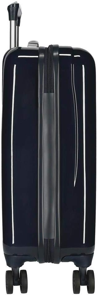 - Kabinenkoffer 38 cm x 55 cm x 20 cm (Rollen und Griffe im Lieferumfang enthalten) Es hat ein Fassungsvermögen von 34 l und wiegt 2,6 kg. Hergestellt aus ABS, einem starren und leichten Material.