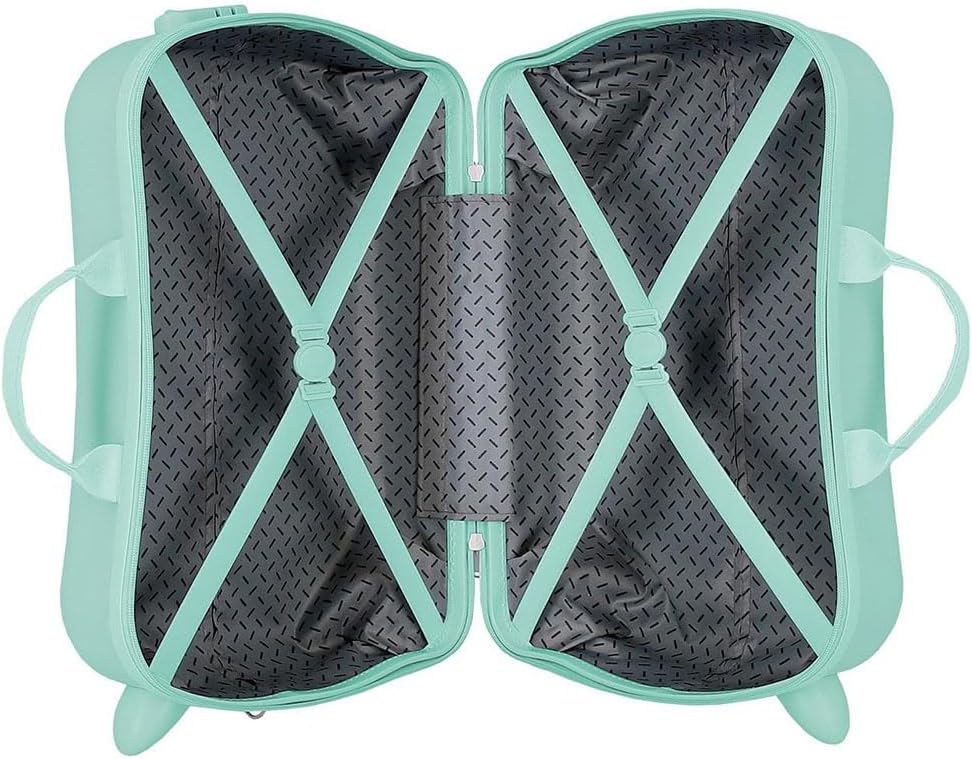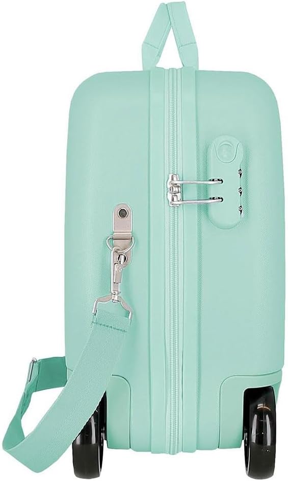 - Kinderkoffer 38 x 50 x 20 cm (Rollen und Griff im Lieferumfang enthalten). Er hat ein Fassungsvermögen von 34 l und wiegt 2,1 kg. Hergestellt aus ABS, einem steifen und leichten Material.