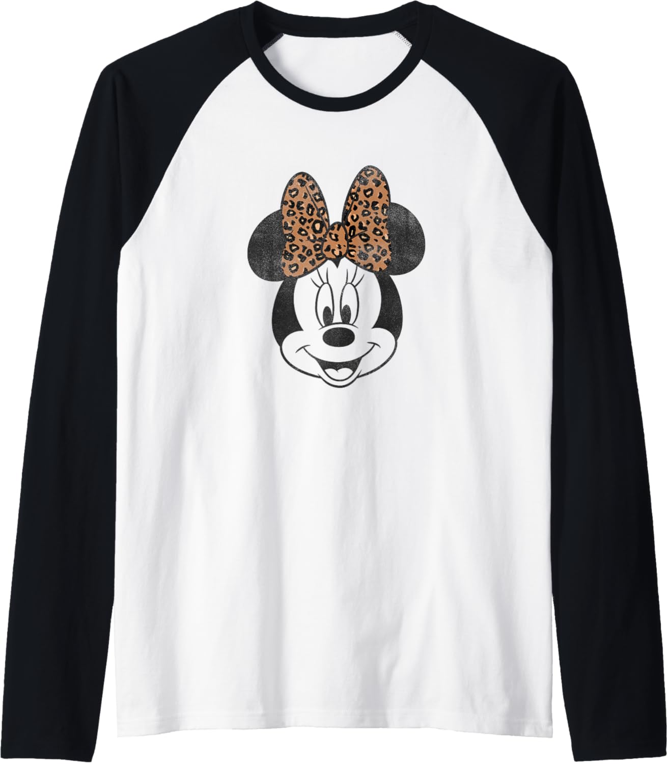 Disney Minnie Mouse Distressed Vintage Cheetah Print Bow Raglan