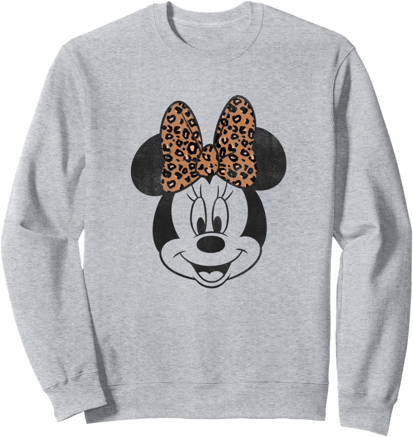 Disney Minnie Mouse Distressed Vintage Cheetah Print Bow Sweatshirt