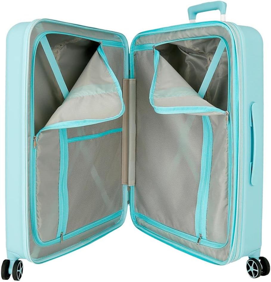 - Koffer 70 cm x 48 cm x 26 cm. Es hat ein Fassungsvermögen von 81 l und wiegt 4,2 kg. Hergestellt aus ABS, einem steifen und leichten Material.
