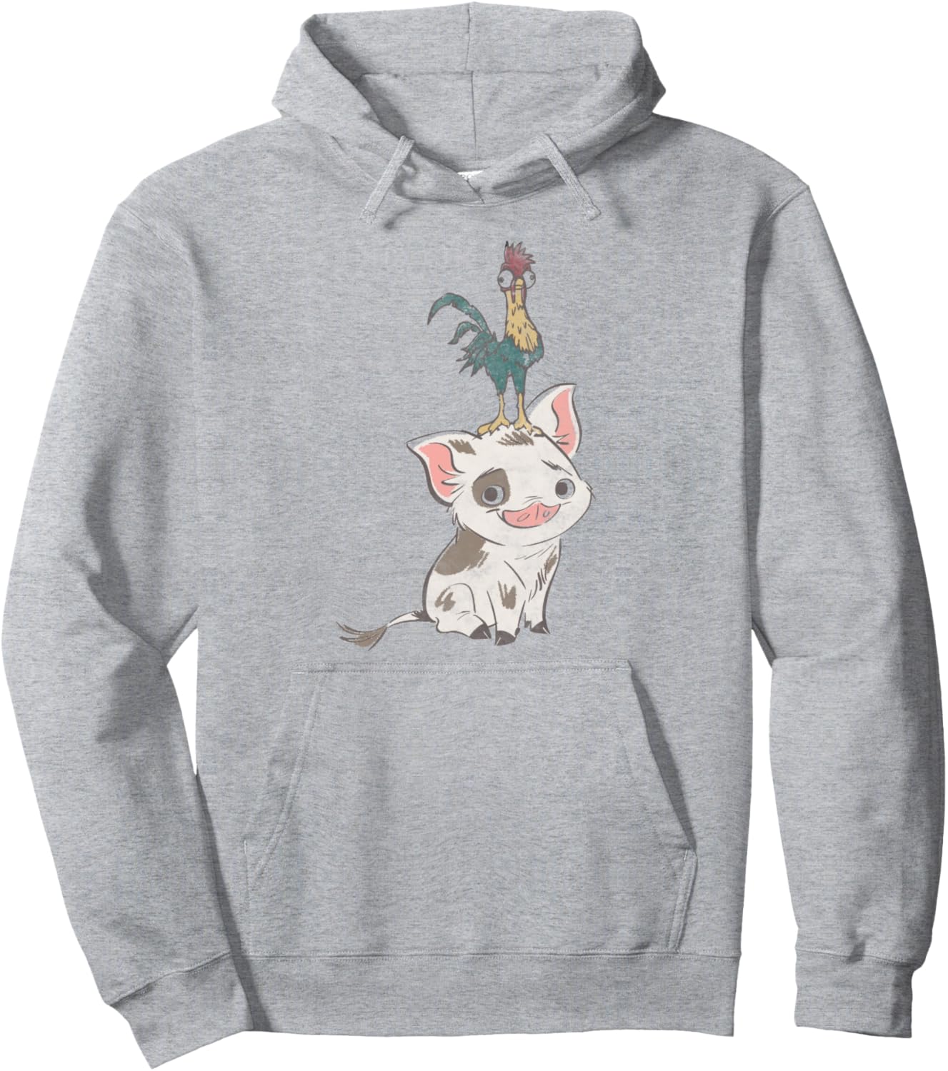 Disney Moana Pua And Hei Hei Distressed Portrait C1 Pullover Hoodie