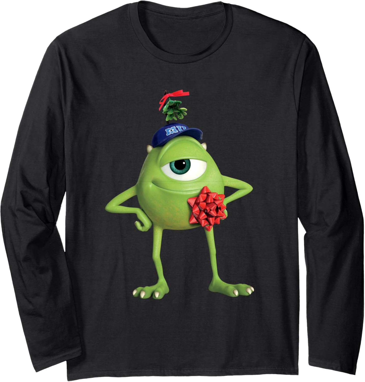 PRODUKTBESCHREIBUNGEN 'Tis the season for smooches, and you'll be primed for affection wearing this funny Monsters University t-shirt. Featuring a young, bow-adorned Mike Wazowski with mistletoe hanging from his MU hat, this holiday Pixar shirt will be the life of Christmas party. Get ready for your trip to Disneyland or Walt Disney World with matching Monsters holiday tees for you and your squad. Available in a t-shirt, premium t-shirt, tank top, long sleeve tee, and sweatshirt.
