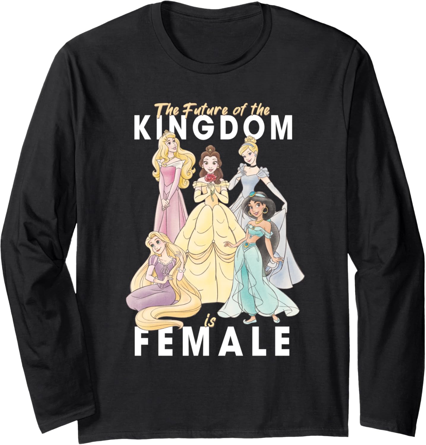 PRODUKTBESCHREIBUNGEN Show the kingdom who's in charge when you wear this pretty Disney Princess t-shirt featuring Aurora, Belle, Cinderella, Jasmine, and Rapunzel. With muted pastel shades and "The Future of the Kingdom is Female" printed across the front, this Disney tee for girls and boys makes an empowering style statement on International Women's Day and beyond. Available in a t-shirt, tank top, premium t-shirt, long sleeve tee, and sweatshirt.