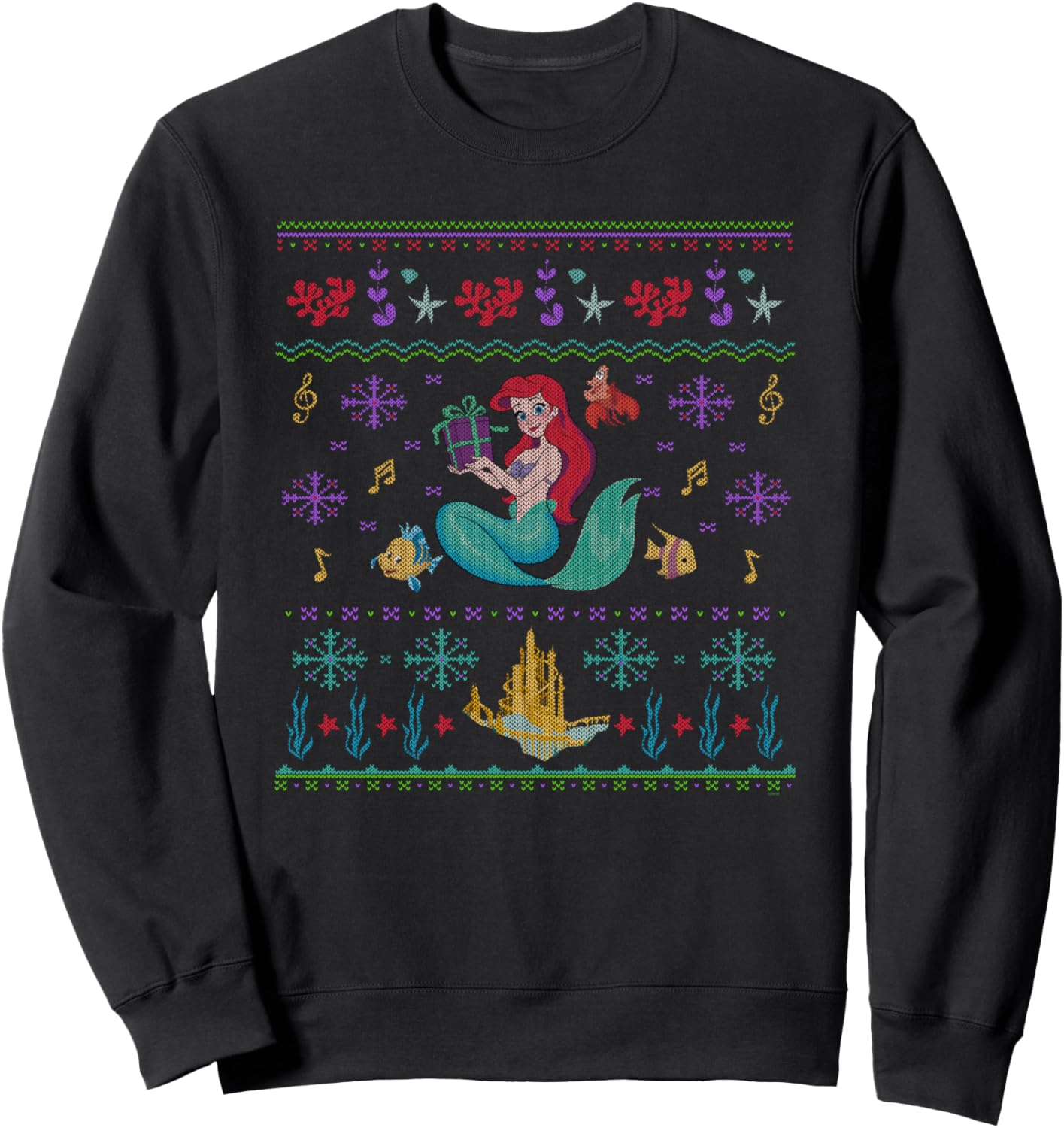 PRODUKTBESCHREIBUNGEN Celebrate the holiday season under the sea with Princess Ariel, Flounder, and Sebastian! Our official not-so-ugly Christmas sweater design inspired by Disney’s classic The Little Mermaid features patterns of snowflakes, musical notes, King Triton’s Castle, and ocean accents like seaweed and sea stars. A great Christmas gift, this cute T-shirt or hoodie is perfect for a holiday trip to Disneyland or Walt Disney World – get multiples and match up with friends and family for even more magic! Available in youth and adult sizes. Find it in a t-shirt, premium t-shirt, tank top, v-neck, long sleeve tee, hoodie, and sweatshirt.