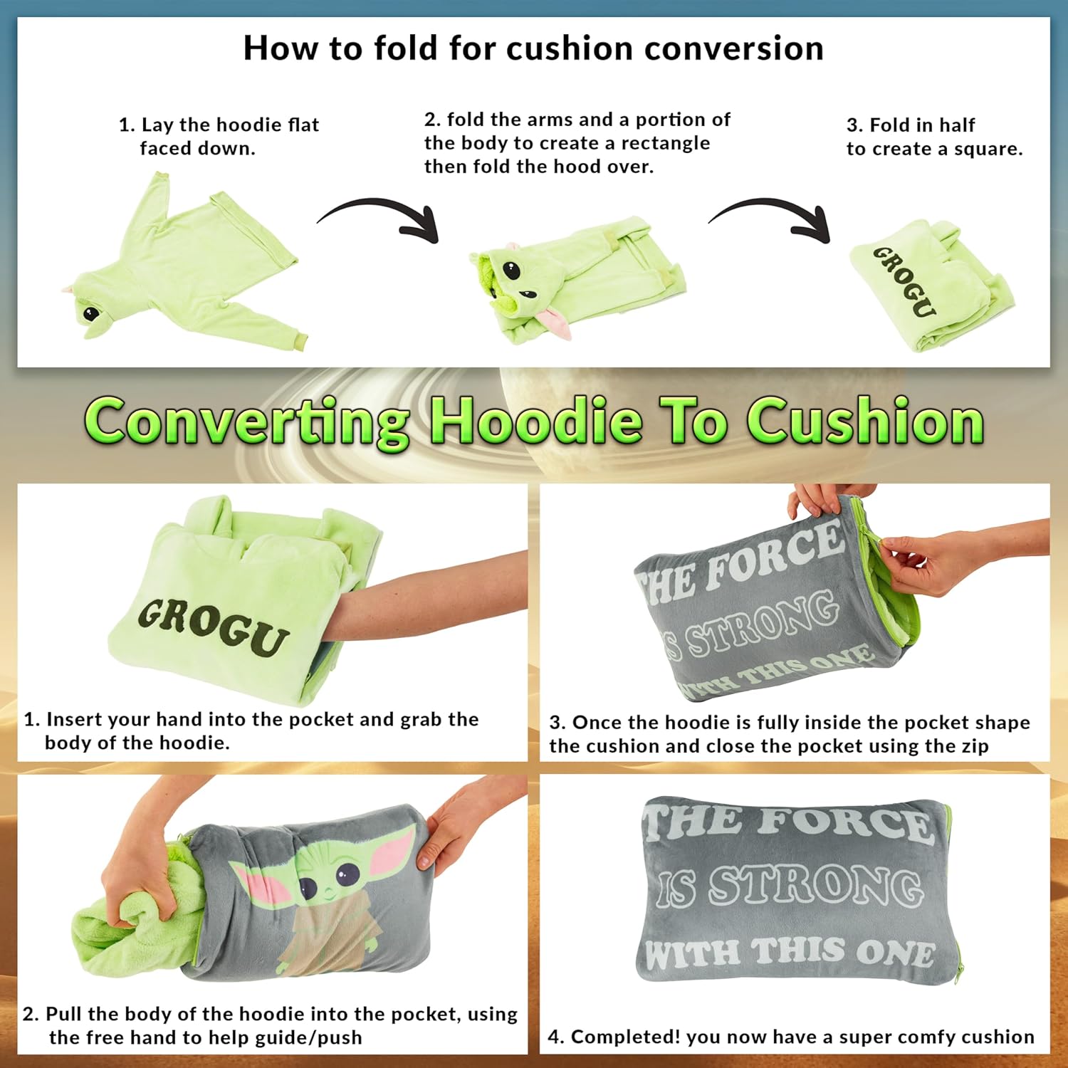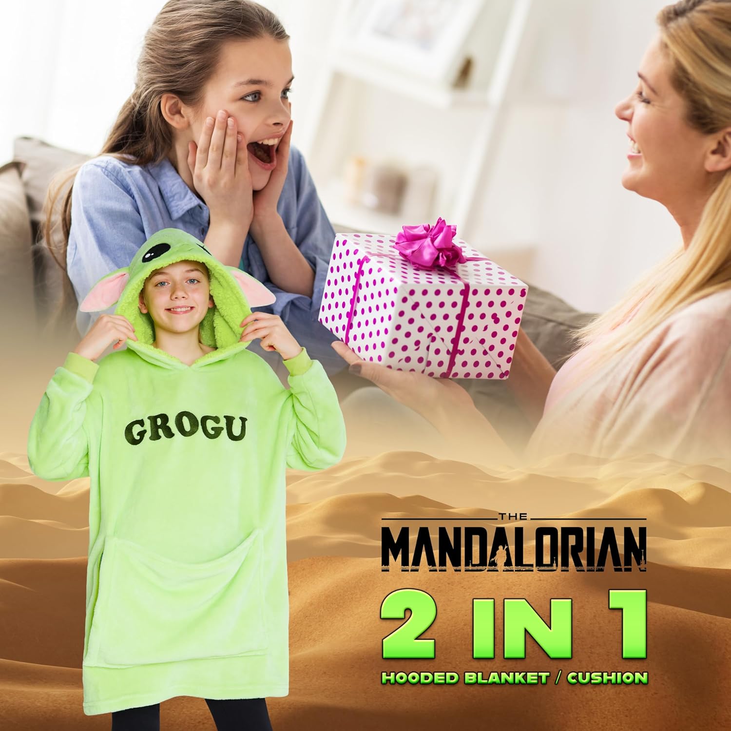 • Die 2-in-1-Funktion dieser Baby Yoda Pullover Decke zum Anziehen Kinder ist unschlagbar praktisch. Wenn die Kinder sie nicht als Decke verwenden, können sie sie einfach in die integrierte Tasche falten und in ein gemütliches Kissen verwandeln. Das