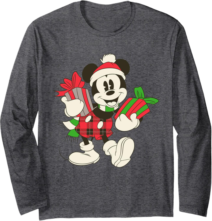 PRODUKTBESCHREIBUNGEN It's the most wonderful time of the year with classic-style Mickey holding gifts as he strikes a pose on the front of this tee shirt. Clad in his Santa hat, winter scarf, and red plaid shorts, vintage Mickey is ready to celebrate the Christmas season. The muted colors add to the retro feel of this festive Disney design.