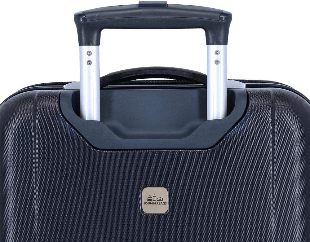 - Handgepäckkoffer 38 cm x 55 cm x 20 cm. Es hat eine Kapazität von 34 l und wiegt 2,6 kg. Hergestellt aus ABS, einem leichten und widerstandsfähigen Material.