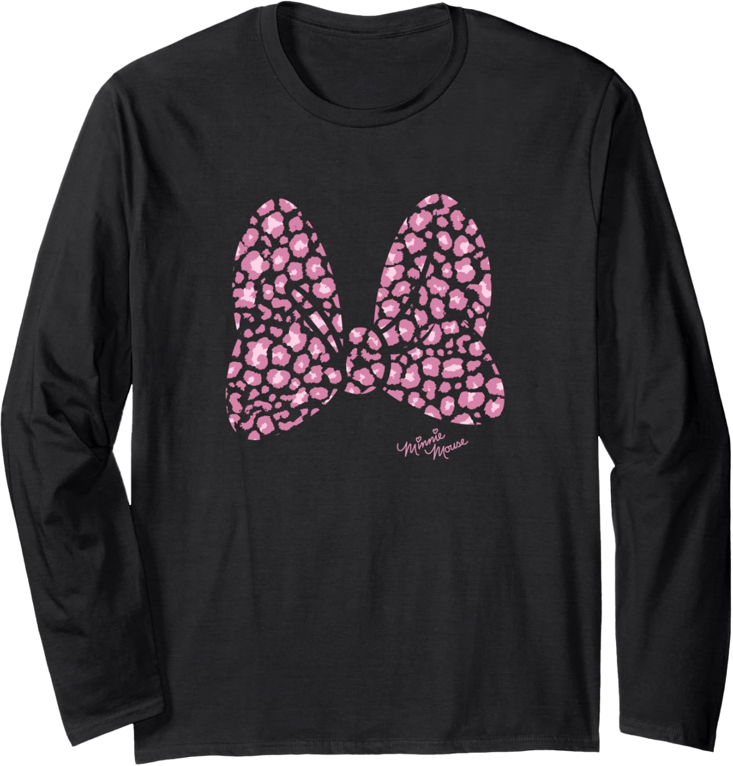 Disney Minnie Mouse Large Pink Cheetah Print Bow Langarmshirt