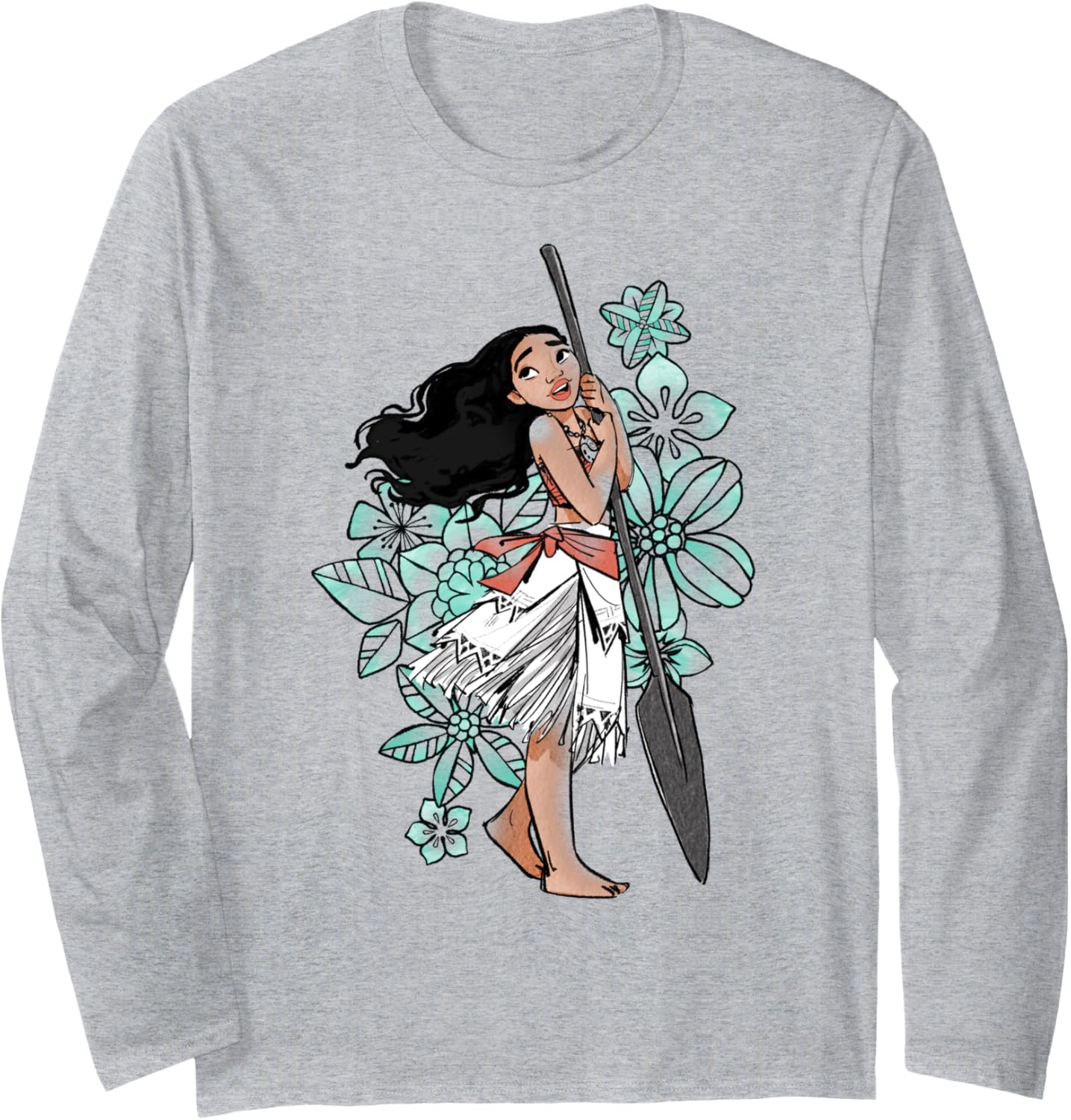 Disney Moana Floral Portrait Sketch Langarmshirt
