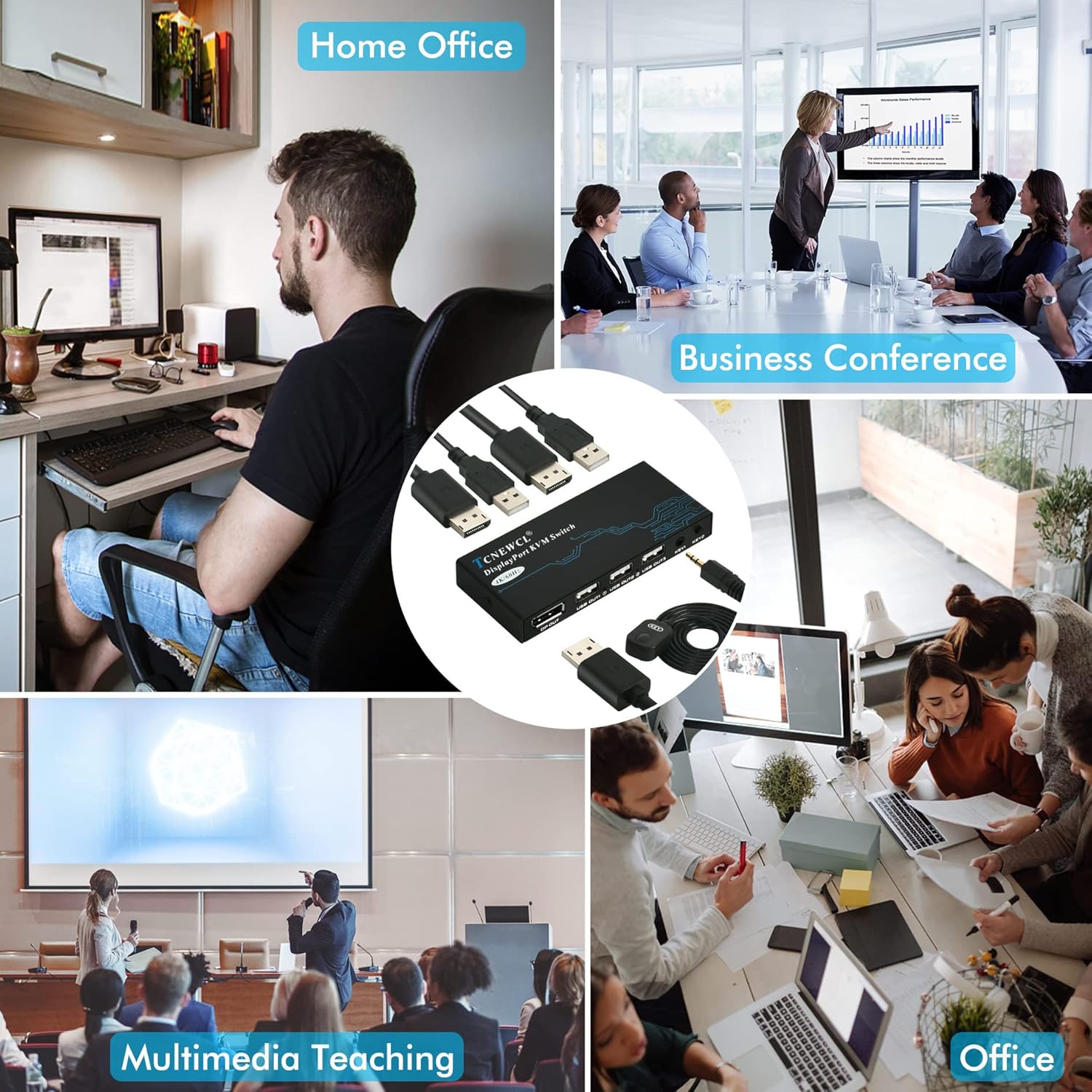 - 【Visueller HD 4K@ 60Hz Genuss】Der 4K DP KVM Switch unterstützt bis zu 4K*2K (3840*2160)@60Hz Ultra HD Videoauflösung und ist kompatibel mit anderen niedrigen Auflösungen, bietet Ihnen eine bessere Definition und Klarheit, macht die Bildanzeige