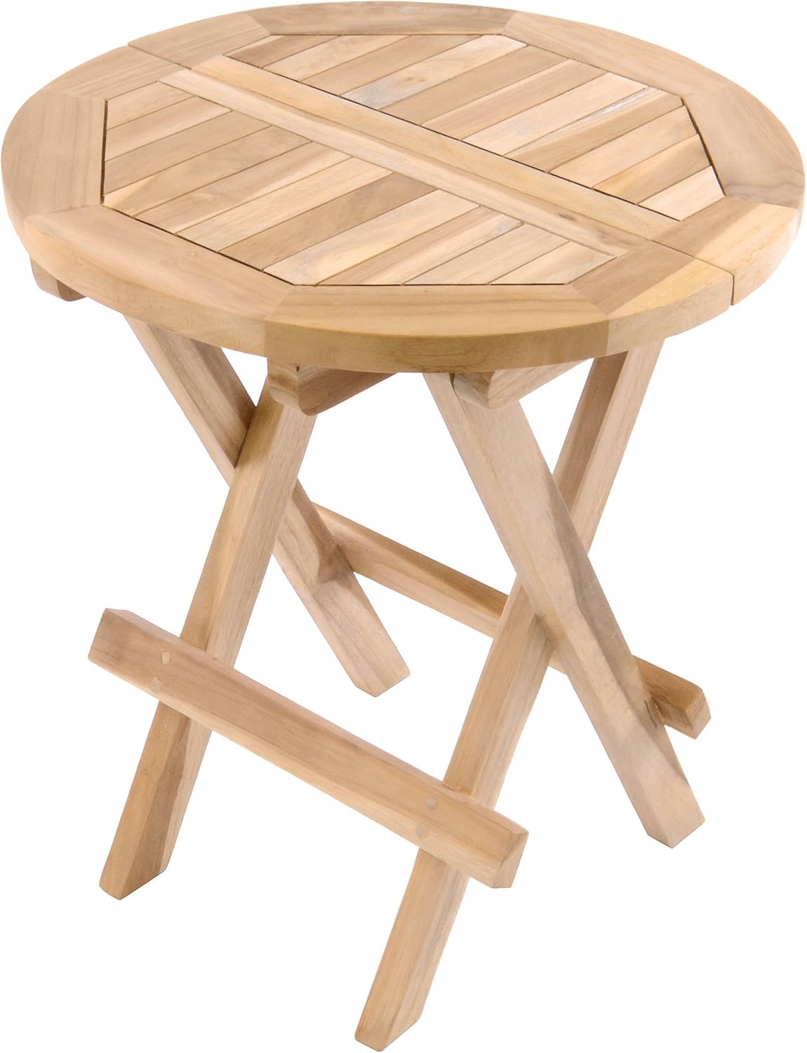 - Der runde Tisch aus Teak-Holz ist mit wenigen Handgriffen ganz einfach aufgestellt und bietet Platz Snacks, Blumen, Zeitschriften oder die gute Tasse Kaffee. Dieser Holztisch hat einen Durchmesser von 40 cm und eine Höhe von 46 cm.