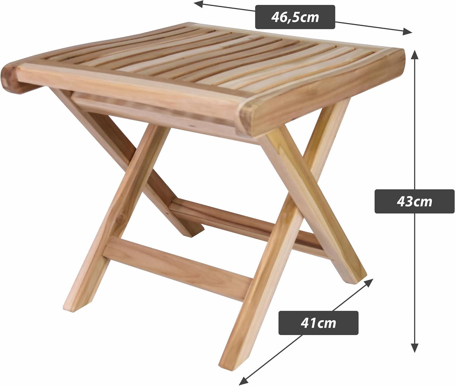 - Besonders attraktiv wird der klappbare Sitz-Hocker durch seine geschwungene Sitzfläche und die stabilen Holzteile.