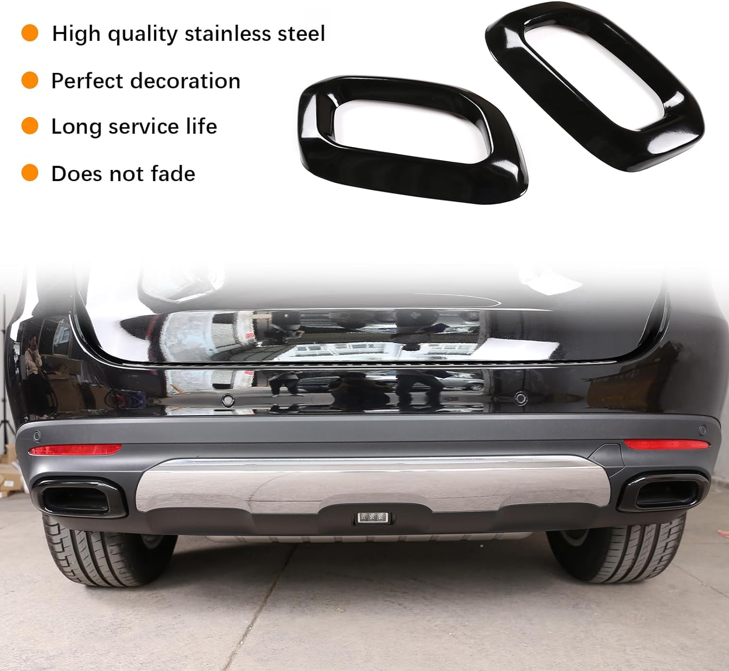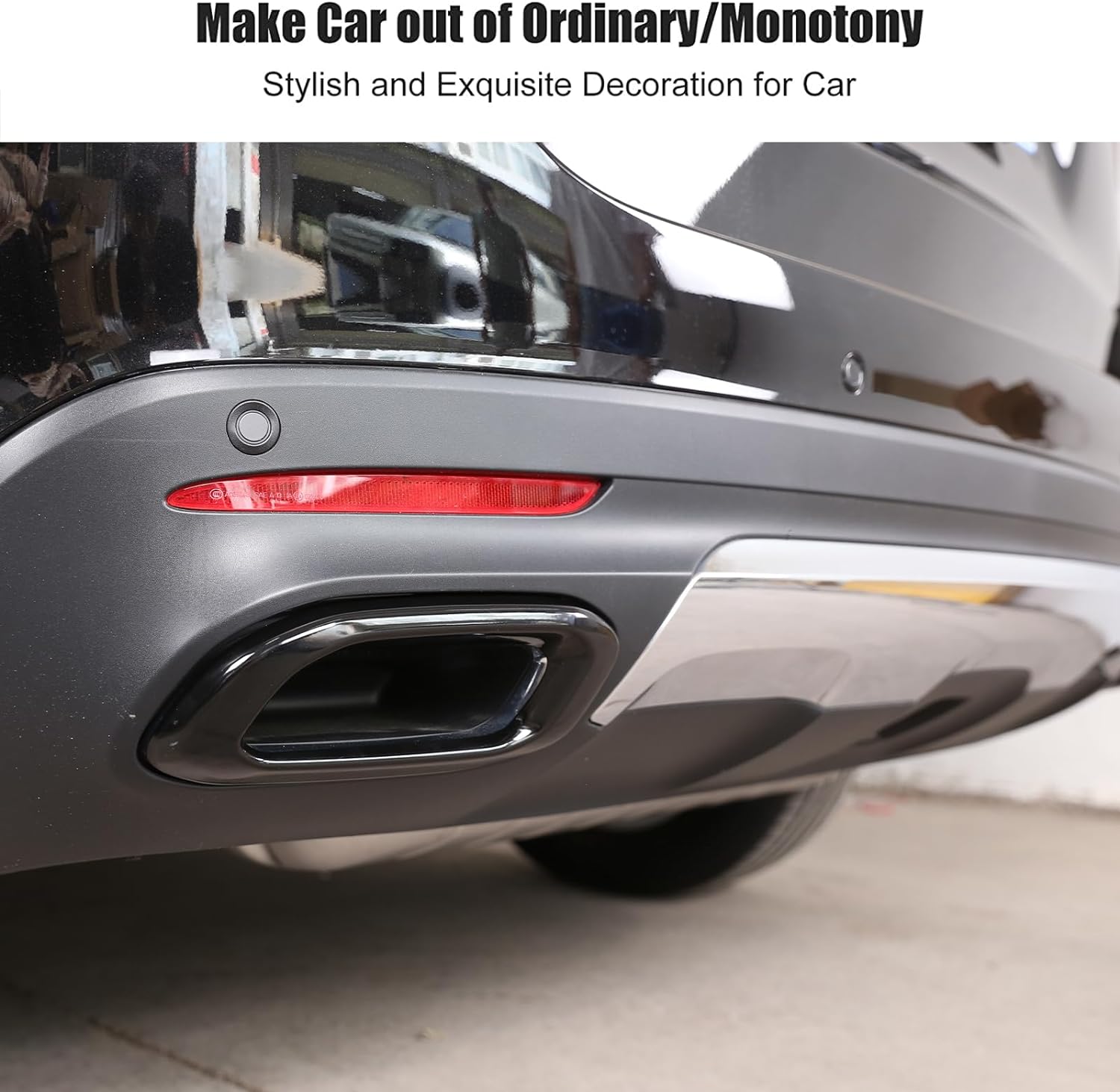 - ☛ Leistung: Die polierten Kanten schmücken die Rückseite des Autos, schützen Ihre Hände und die Lackierung und halten das ursprüngliche Autoauspuff fest an Ort und Stelle, ohne herunterzufallen.
