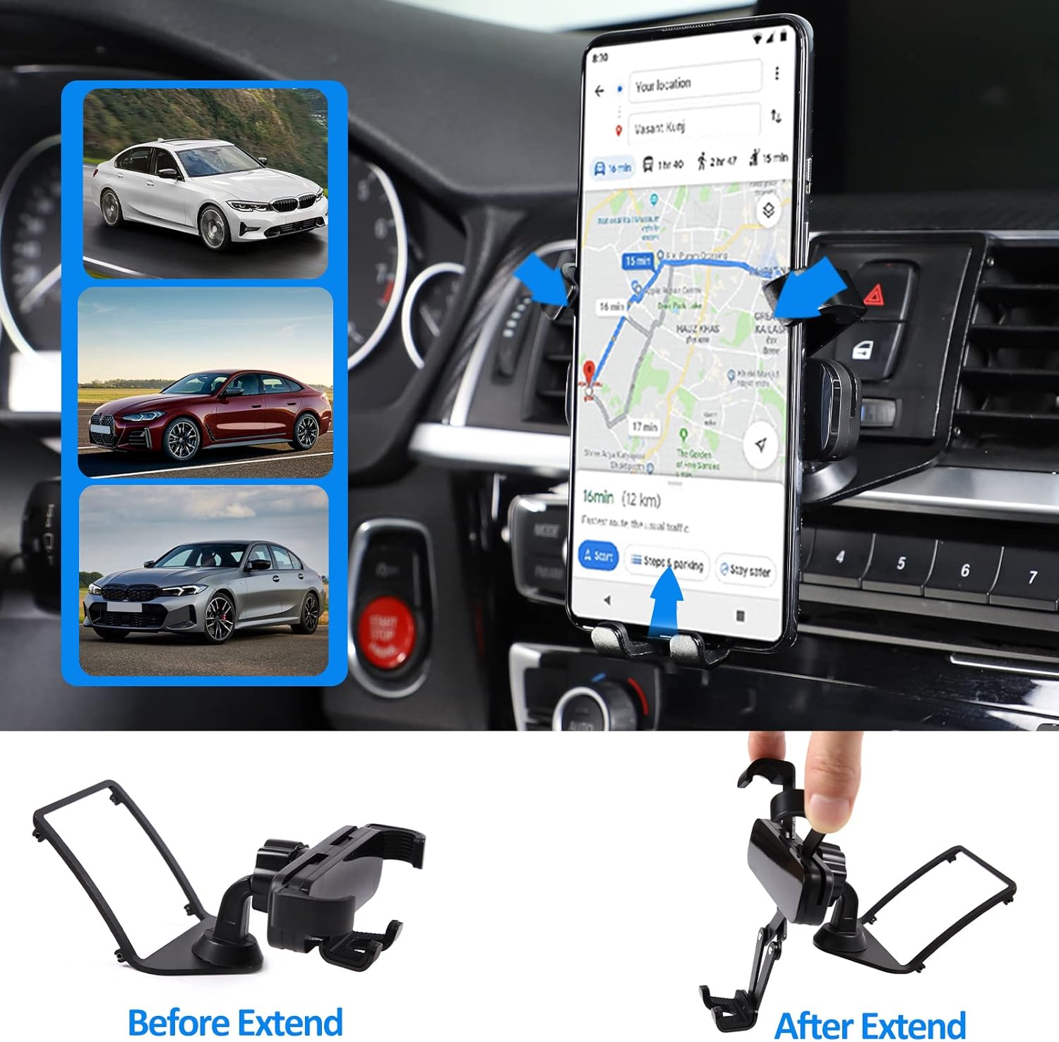 - 🚗【360° drehbar, nach Wunsch einstellbar】 Bester Betrachtungswinkel beim Fahren mit dieser Handyhalterung für Lüftungsschlitze. Sie ist mit einem um 360° drehbaren Kugelgelenk ausgestattet, Sie können Ihr Handy mit einer Hand für ein