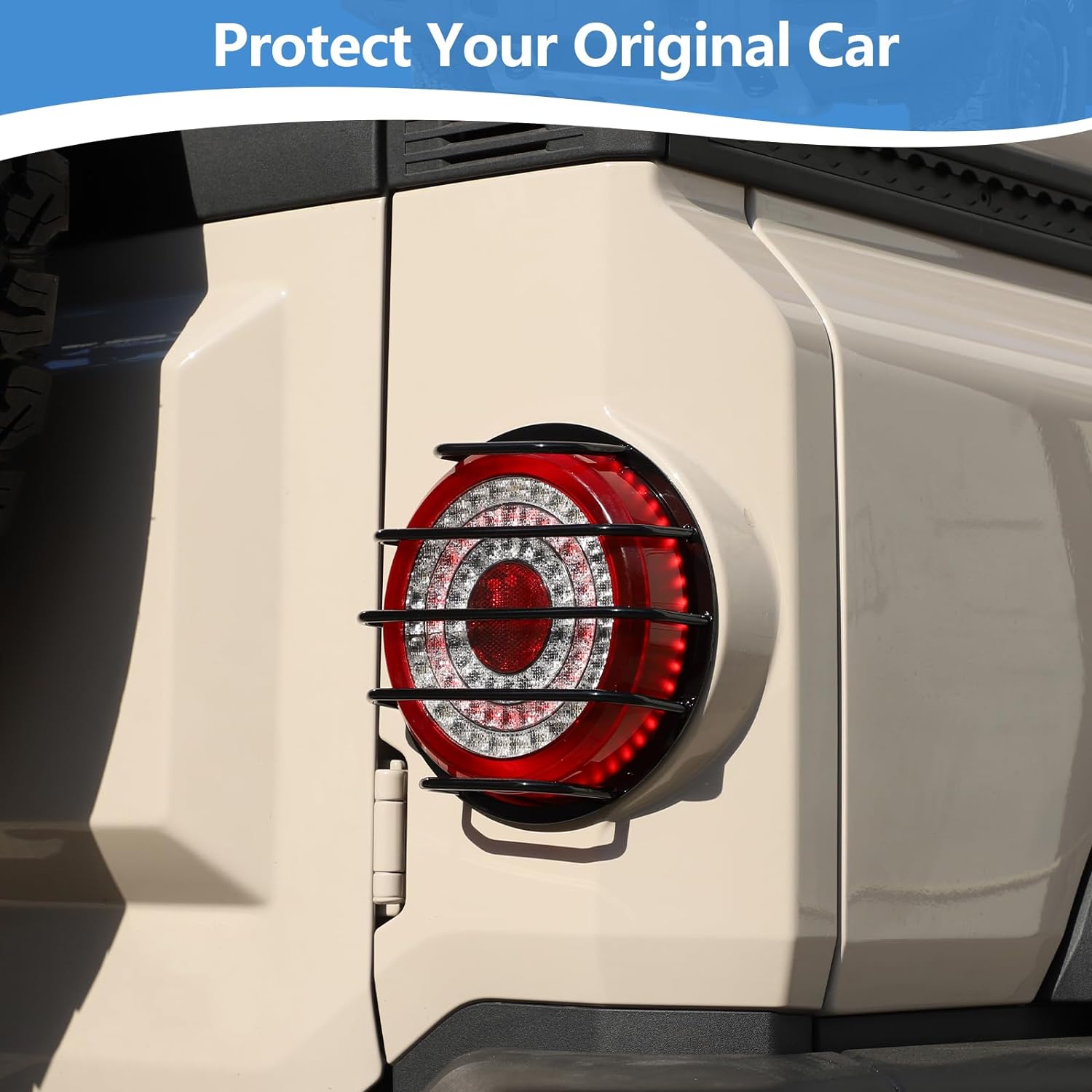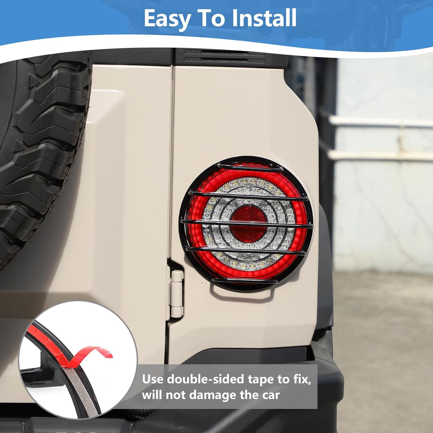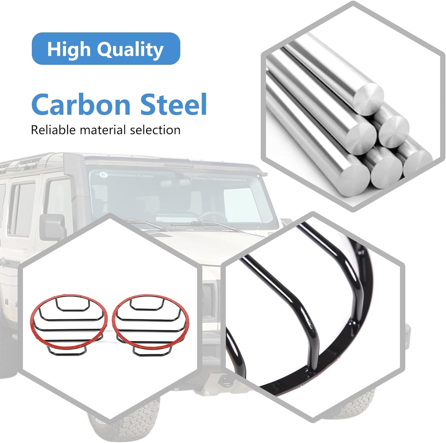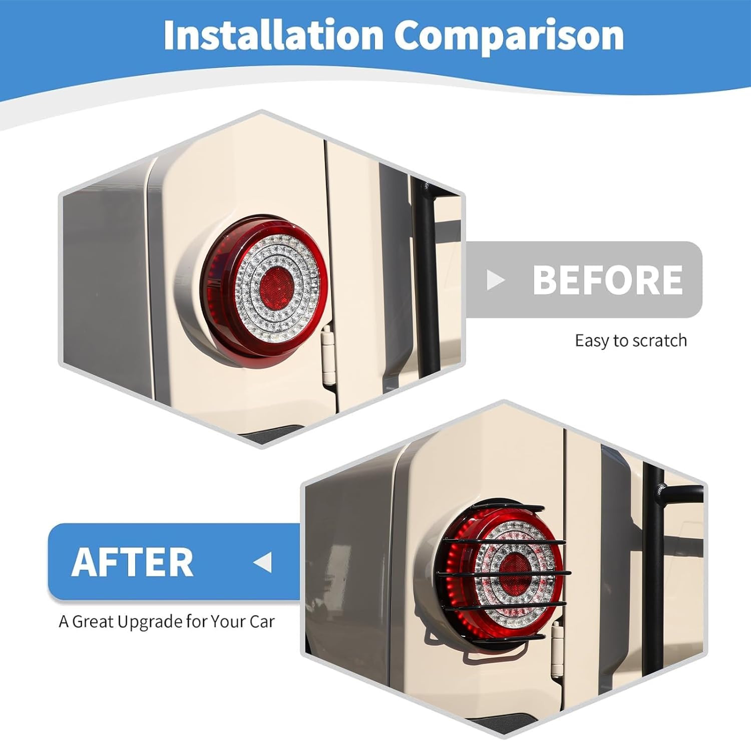 - 🚗【Premium-Material】: Rücklicht-Lampenabdeckung Schutzleiste Rahmen Blenden Dekoration aus starkem Karbonstahl. Korrosionsschutz und Rostbeständigkeit. Als gutes Zubehör, um Ihrem Auto-Rücklicht einen robusten Offroad-Stil zu verleihen und die