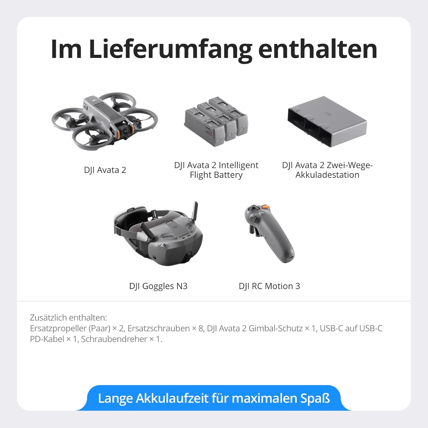 - Enthält die Drohne, 3 Intelligent Batteries, DJI RC Motion 3, DJI Goggles N3 und mehr. Bietet ein beeindruckendes Flugerlebnis für alle deine Abenteuer. Ideal für angehende Piloten.
