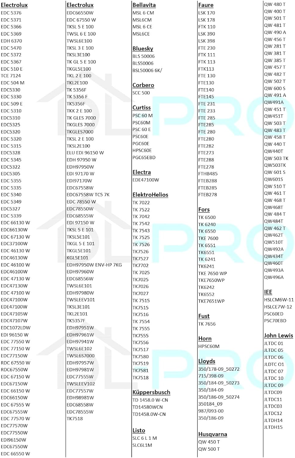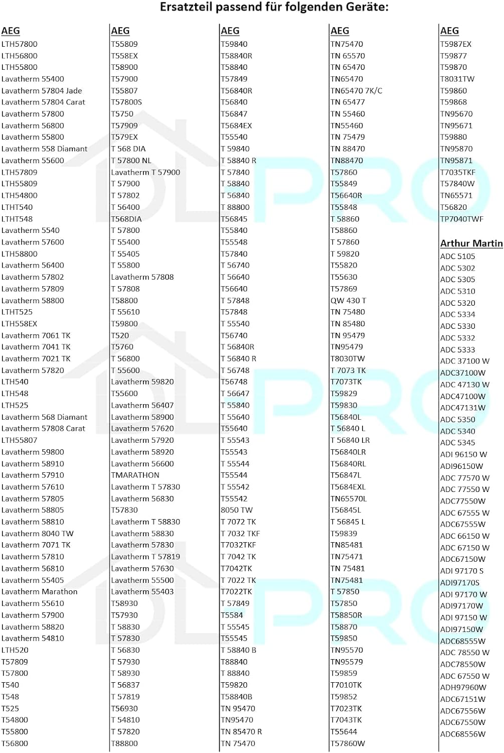 - Passend u.a. für Modelle AEG Lavatherm I Für Electrolux Modelle EDC.. EDH.. TCE.. EDE.. EDI.. RDC.. TKS.. TWS.. TK.. TKG.. TKL.. TK5.. TKK.. ELU.. KGL.. TK7.. I Eine Liste der Geräte, die zum Produkt passen, finden Sie in der Galerie!