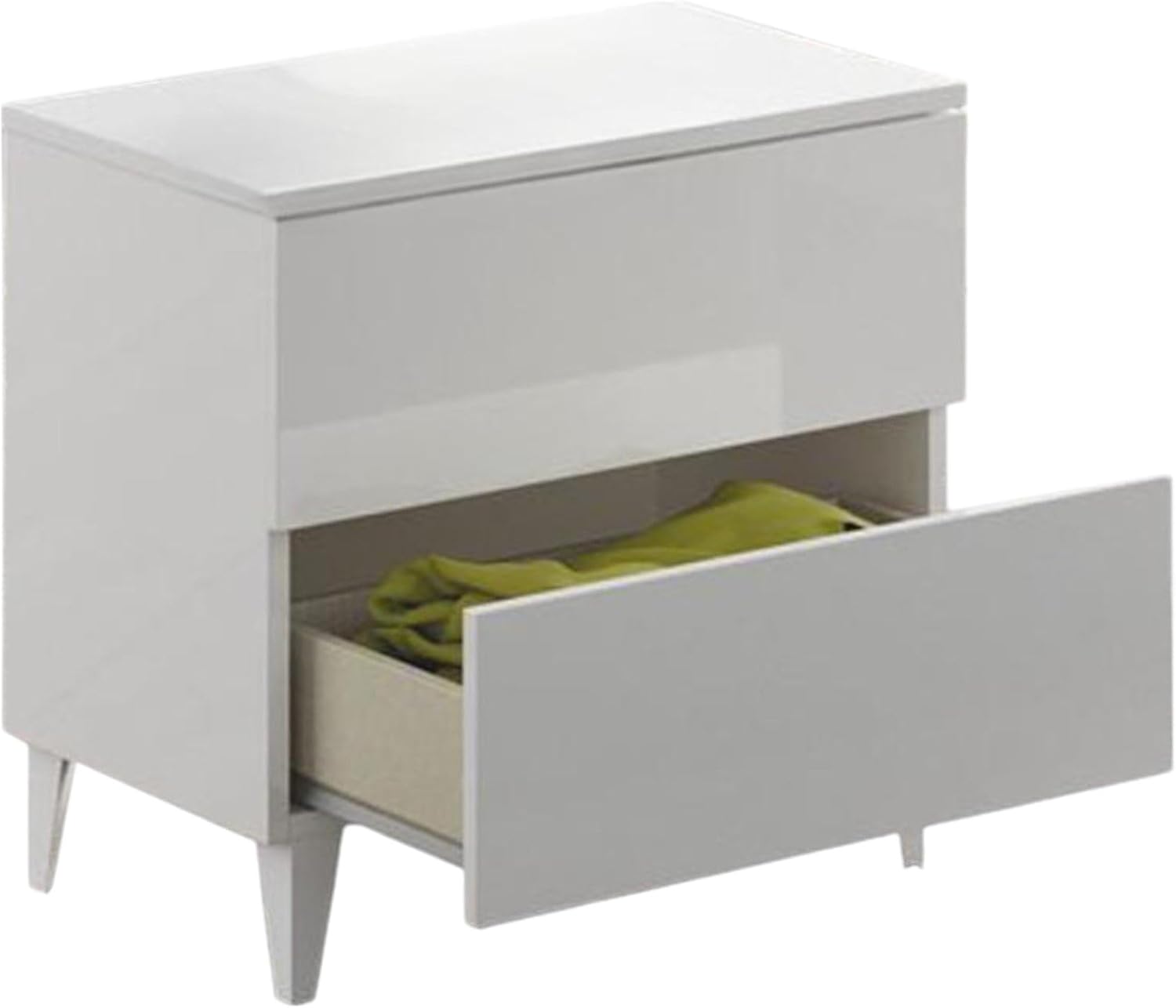 • NACHTTISCH NASHVILLE - Nachttisch mit 2 Schubladen, Nachttisch, Niedrige Kommode für Schlafzimmer, cm 50x34h49, Glänzend Weiss