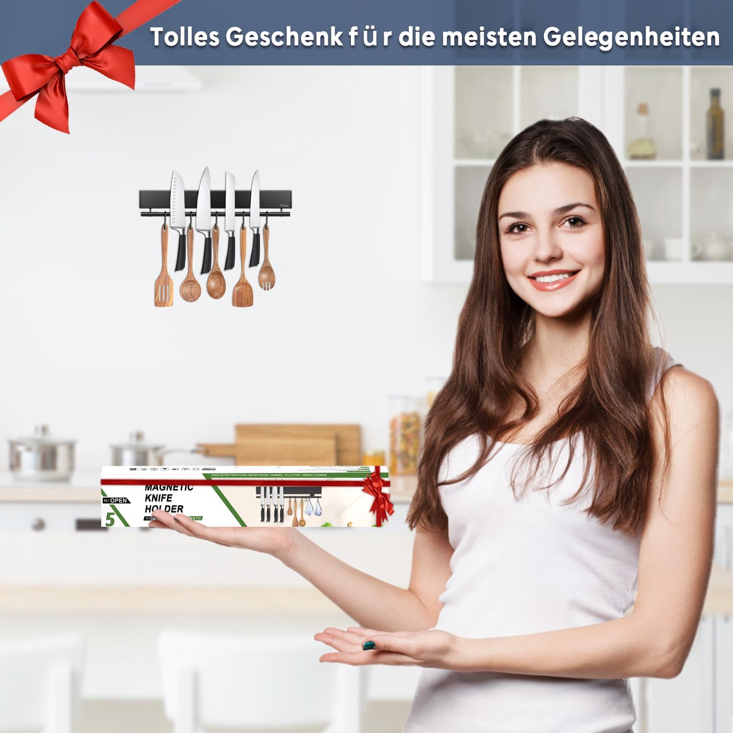 - 【IDEAL FÜR GESCHENKE & QUALITÄTSGARANTIE】 Unser gut durchdachter magnetischer Messerhalter ist das ideale Geschenk für Ihre Mutter, Freundin oder einen Koch usw., das Ihre Küche ordentlicher und sicherer macht. In der Zwischenzeit kommt jedes Set