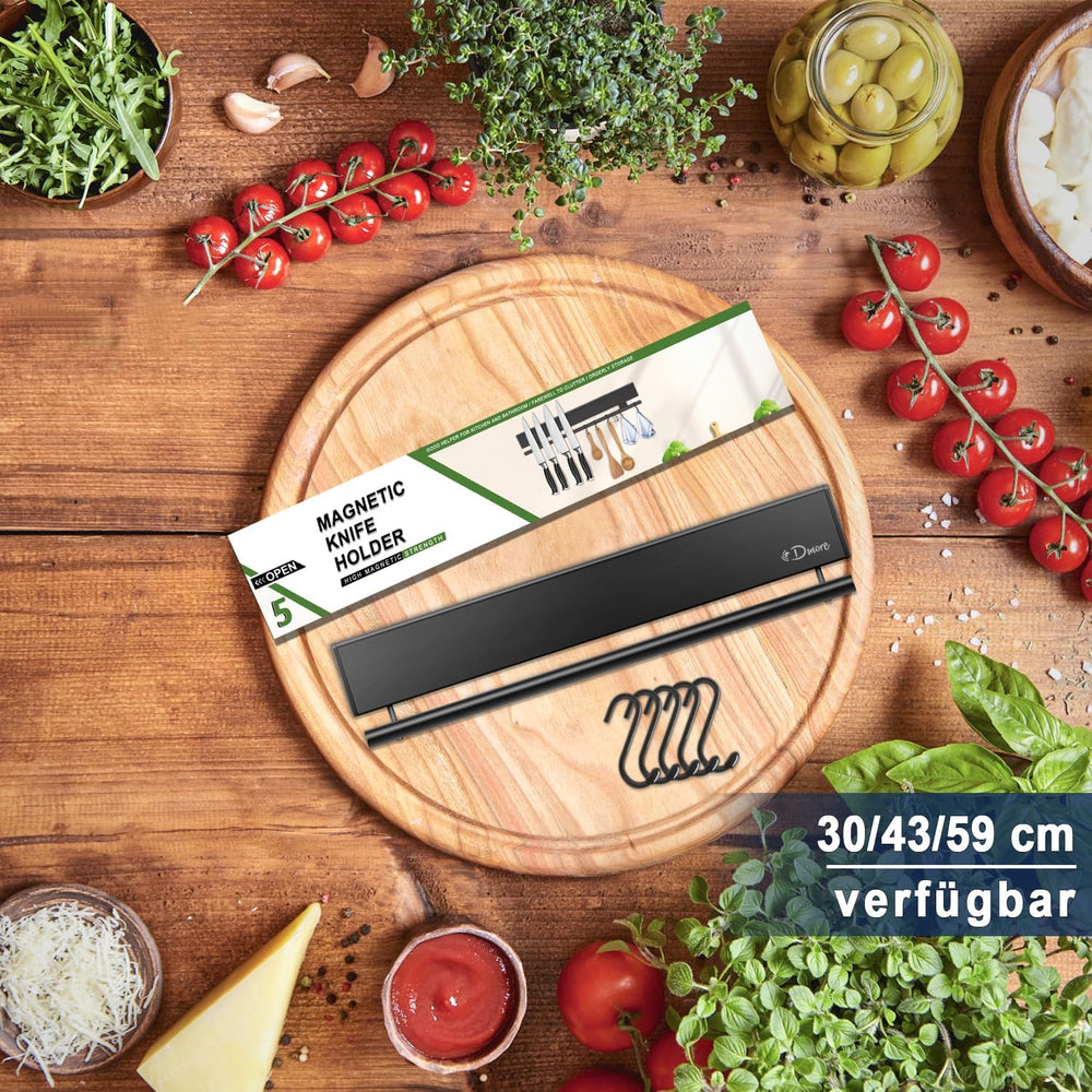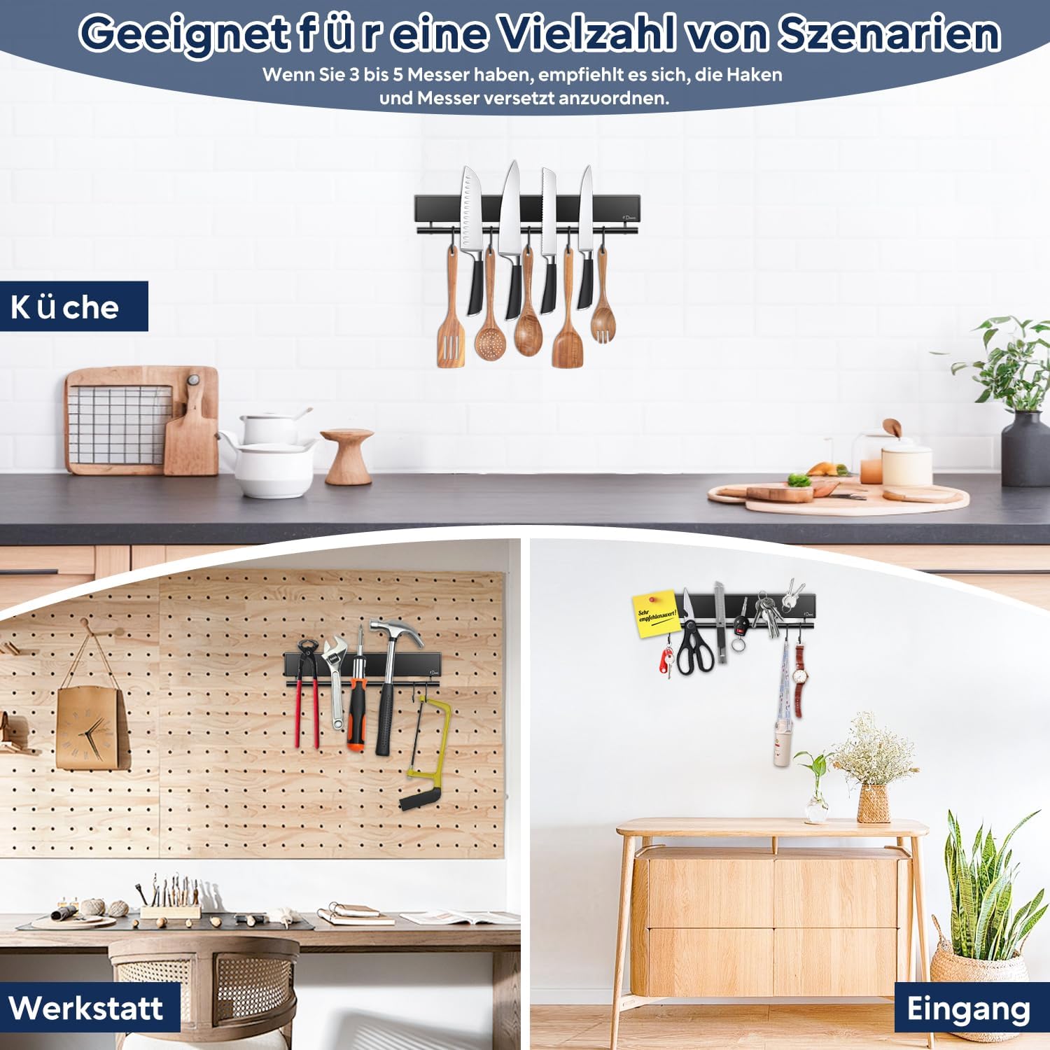 - 【2 IN 1 MULTIFUNKTIONALES MESSERLEISTE MAGNETISCH UND HAKENLEISTE】 das Dmore neue, verbesserte 30 cm lange Messerhalter kann nicht nur zur Aufbewahrung von Messern (3~5 Messer) verwendet werden, sondern verfügt auch über 5 Haken, die auch als