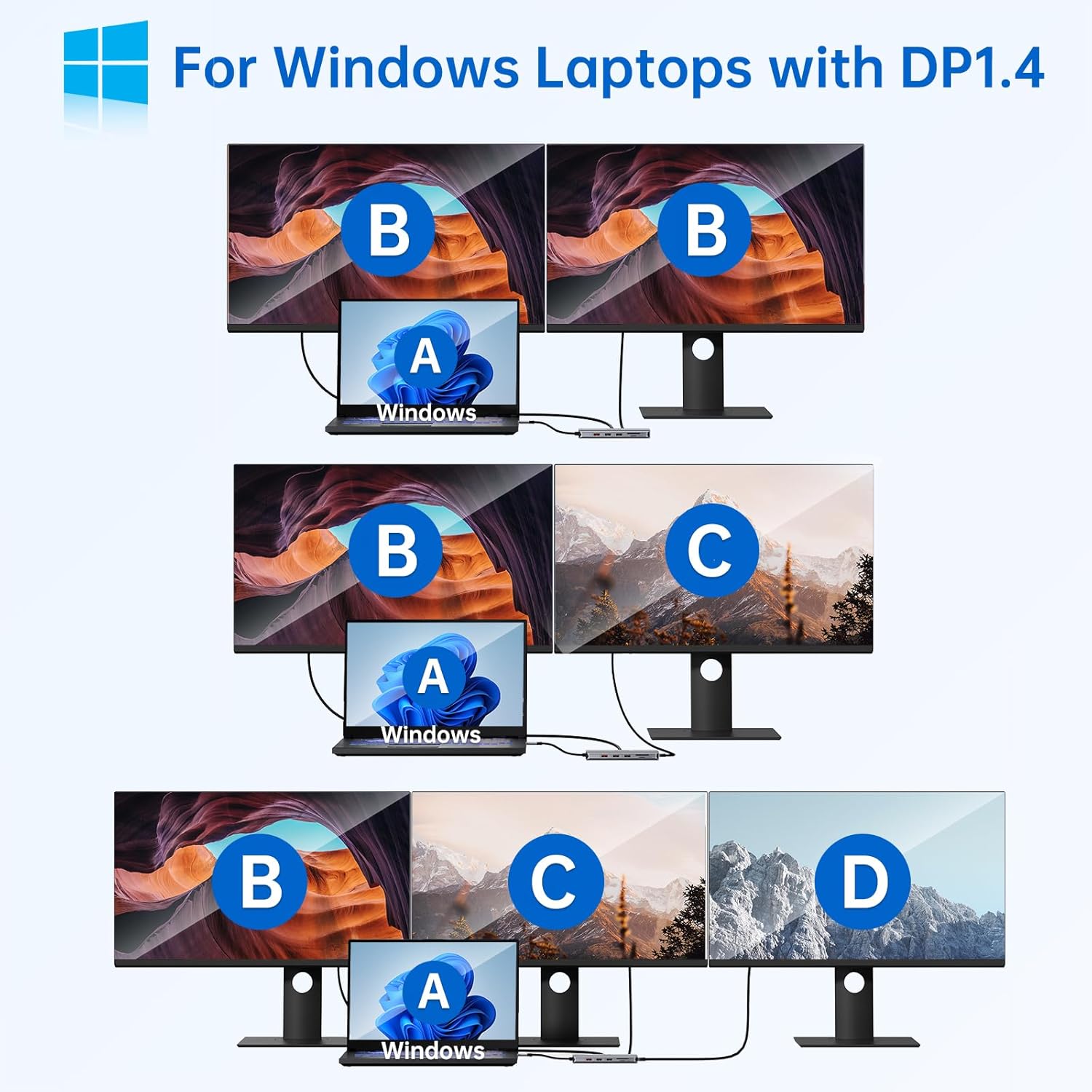 - Dual HDMI Displayport USB C Adapter: USB C Hub Triple Display unterstützt den erweiterten Modus oder Spiegelmodus, HDMI1: 4k@60Hz, HDMI2: 4k@30Hz, DP: 4k@60Hz. Unterstützt SST und MST Modi. ❤Hinweis: Das MacOS-System unterstützt nur den